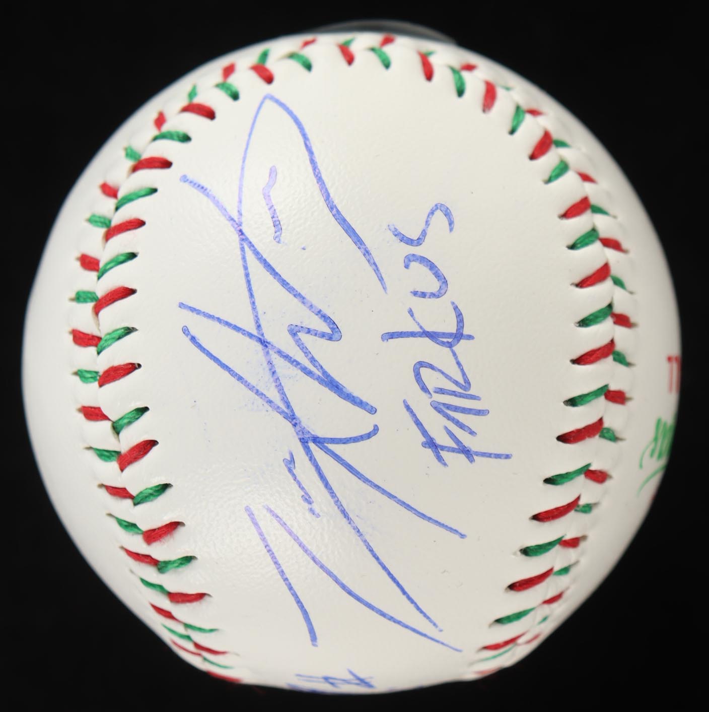 Custom baseball has been hand-signed by Zack Ward, Yano Anaya, and Scott Schwartz.
