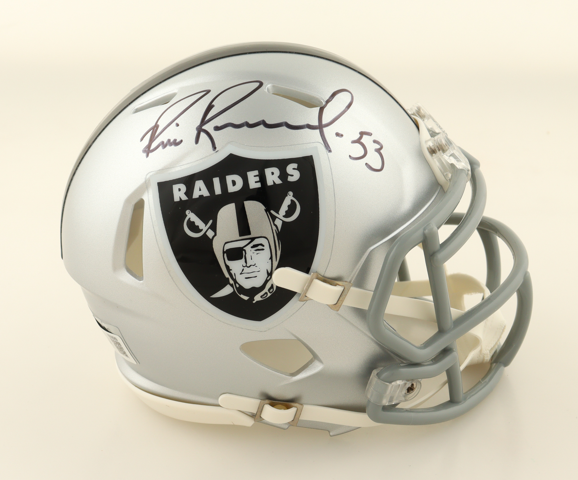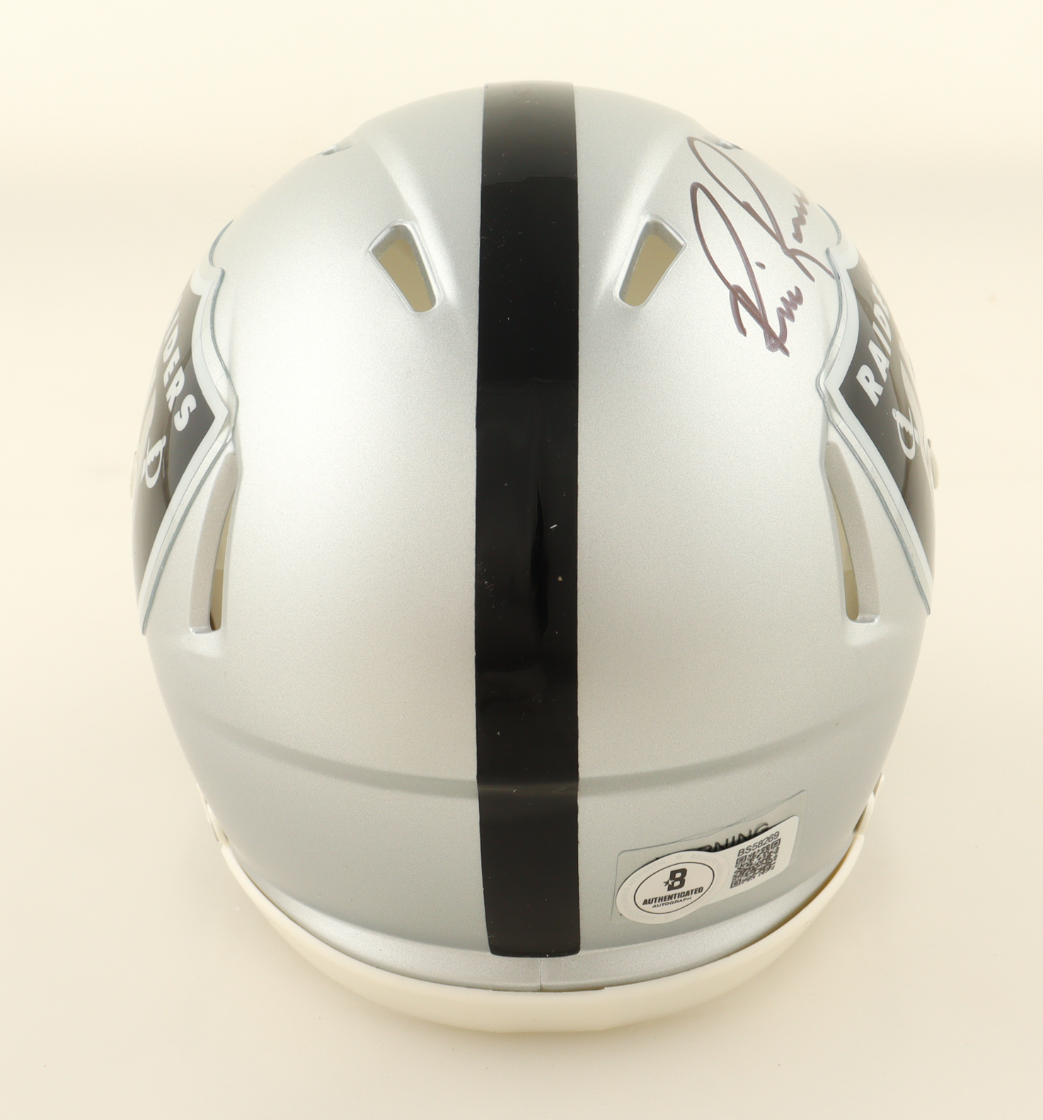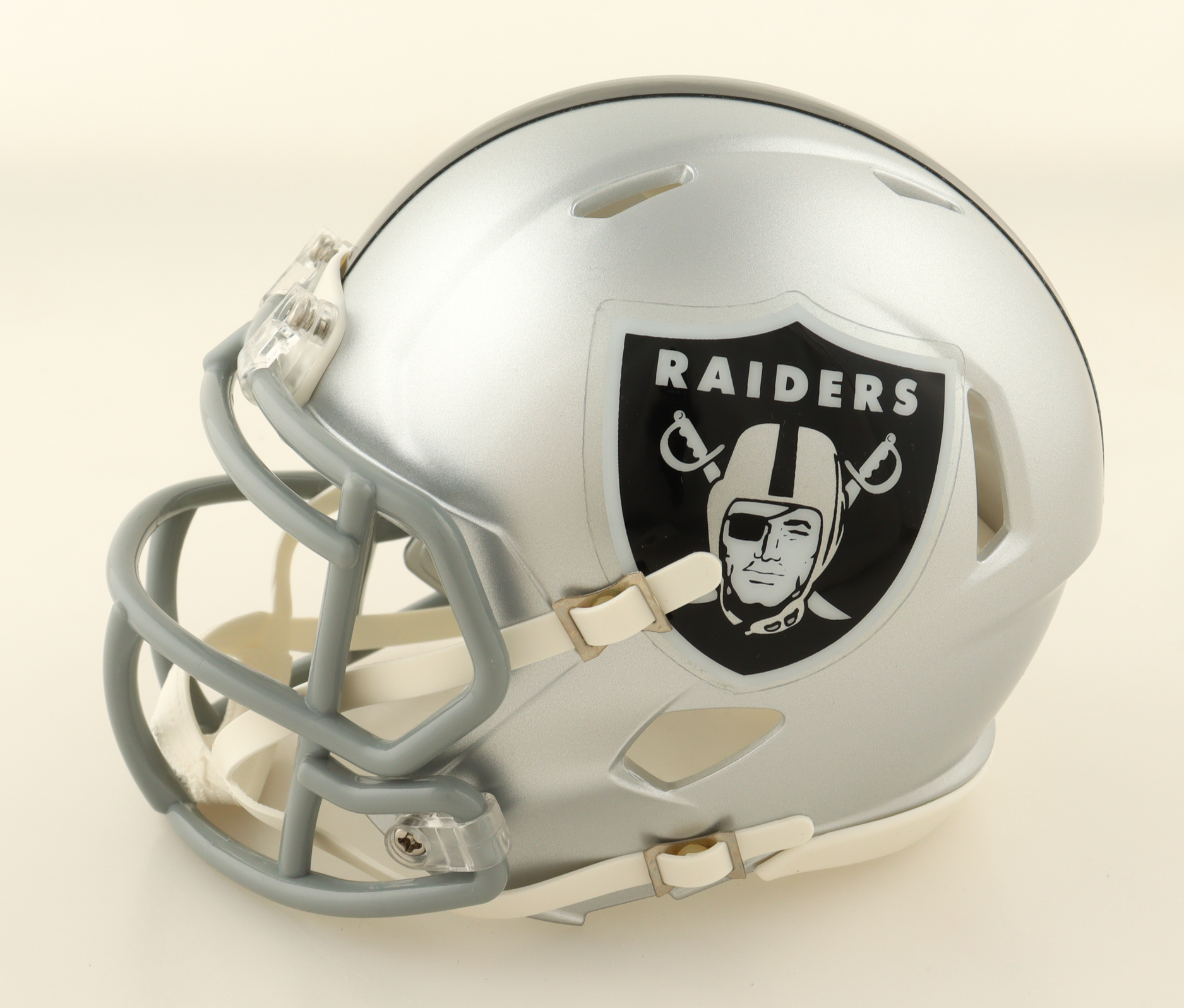 Riddell Las Vegas Raiders Speed mini helmet. Hand-signed by Bill Romanowski.