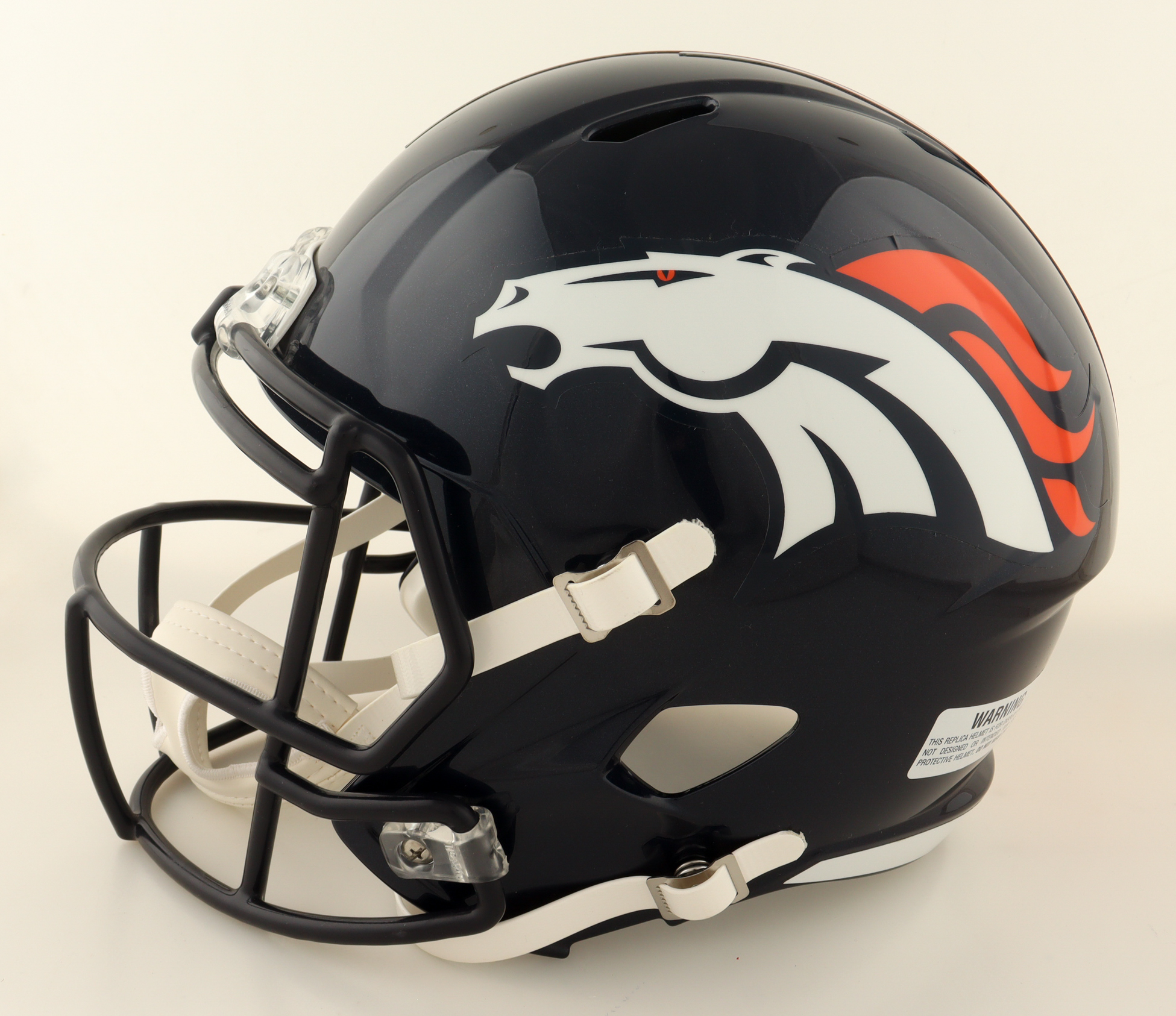 Riddell Denver Broncos full-size replica Speed helmet. Hand-signed and inscribed by Clinton Portis.