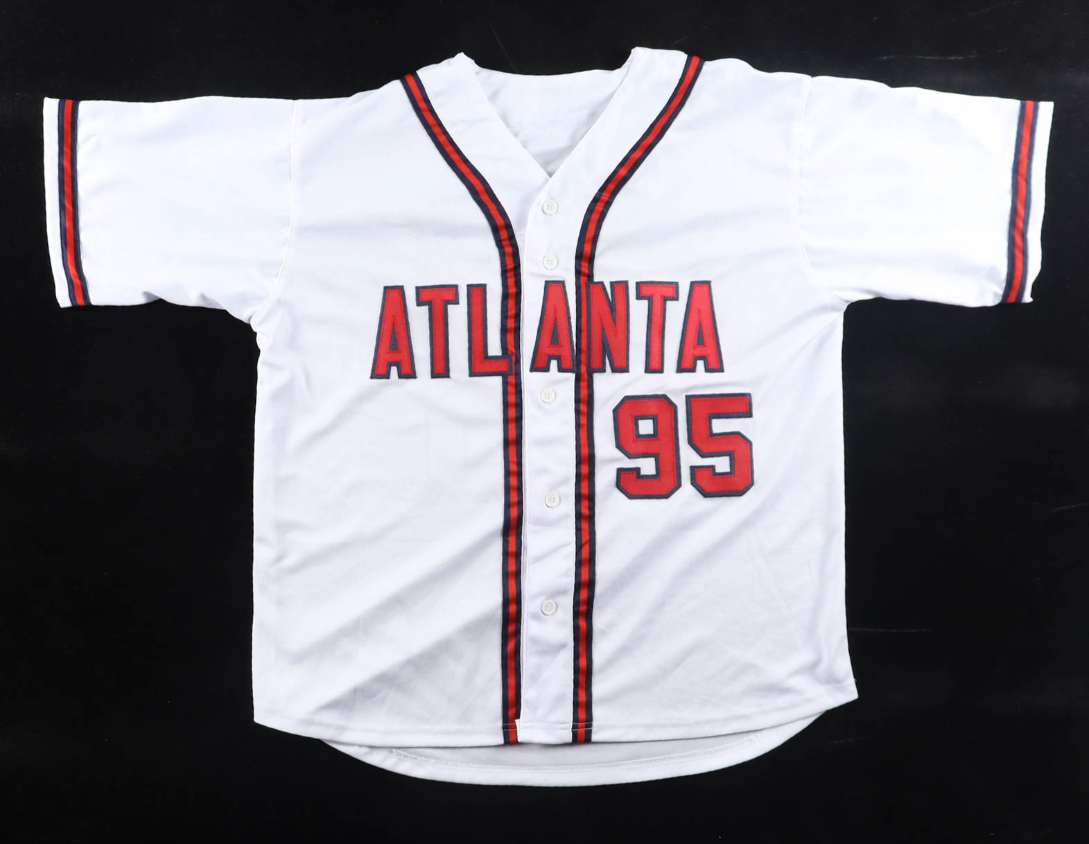 Custom jersey. Everything is sewn on, size XL. Hand-signed by (6) including Dave Justice, Steve Avery, Mark Wohlers, Kent Mercker, Javier Lopez, and Mike Deveraux.