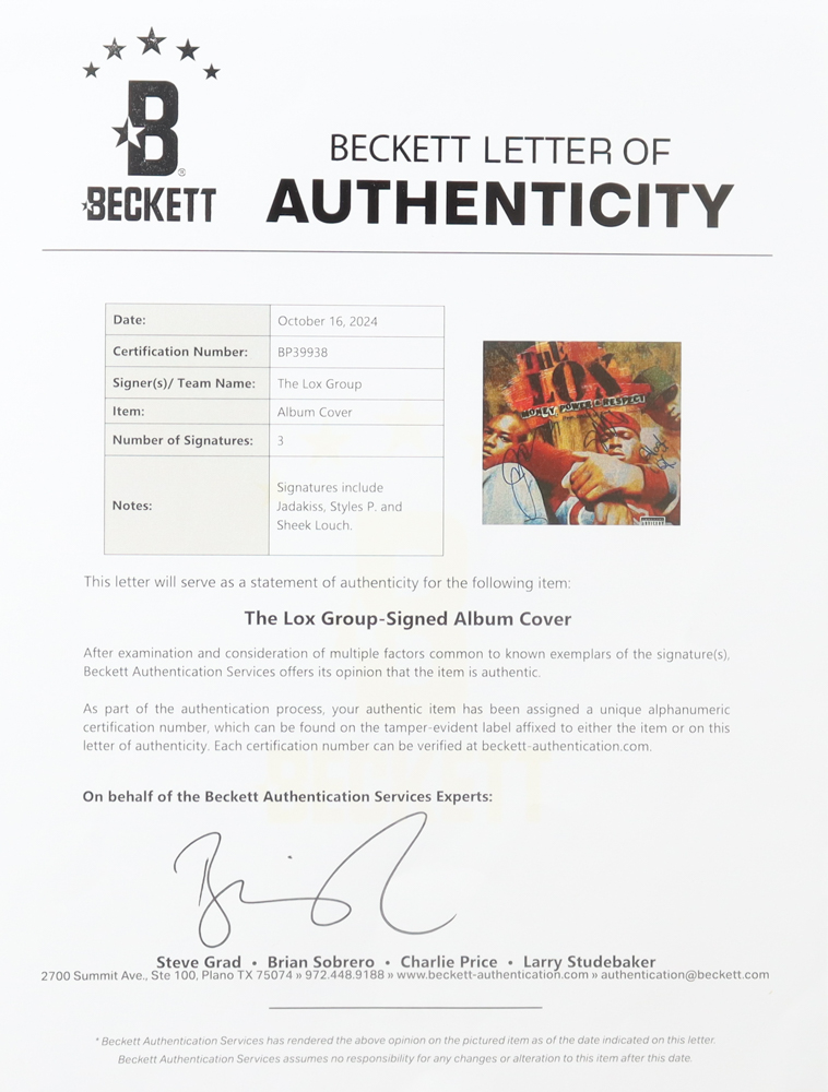 The Lox "Money, Power & Respect" Group-Signed Vinyl Record Album with Jadakiss, Styles P & Sheek Louch (Beckett)