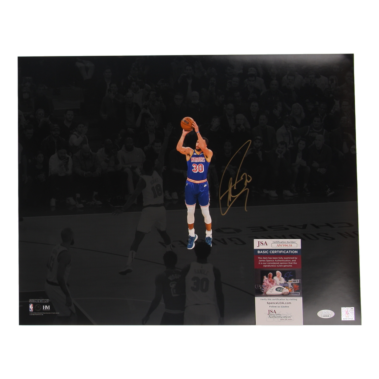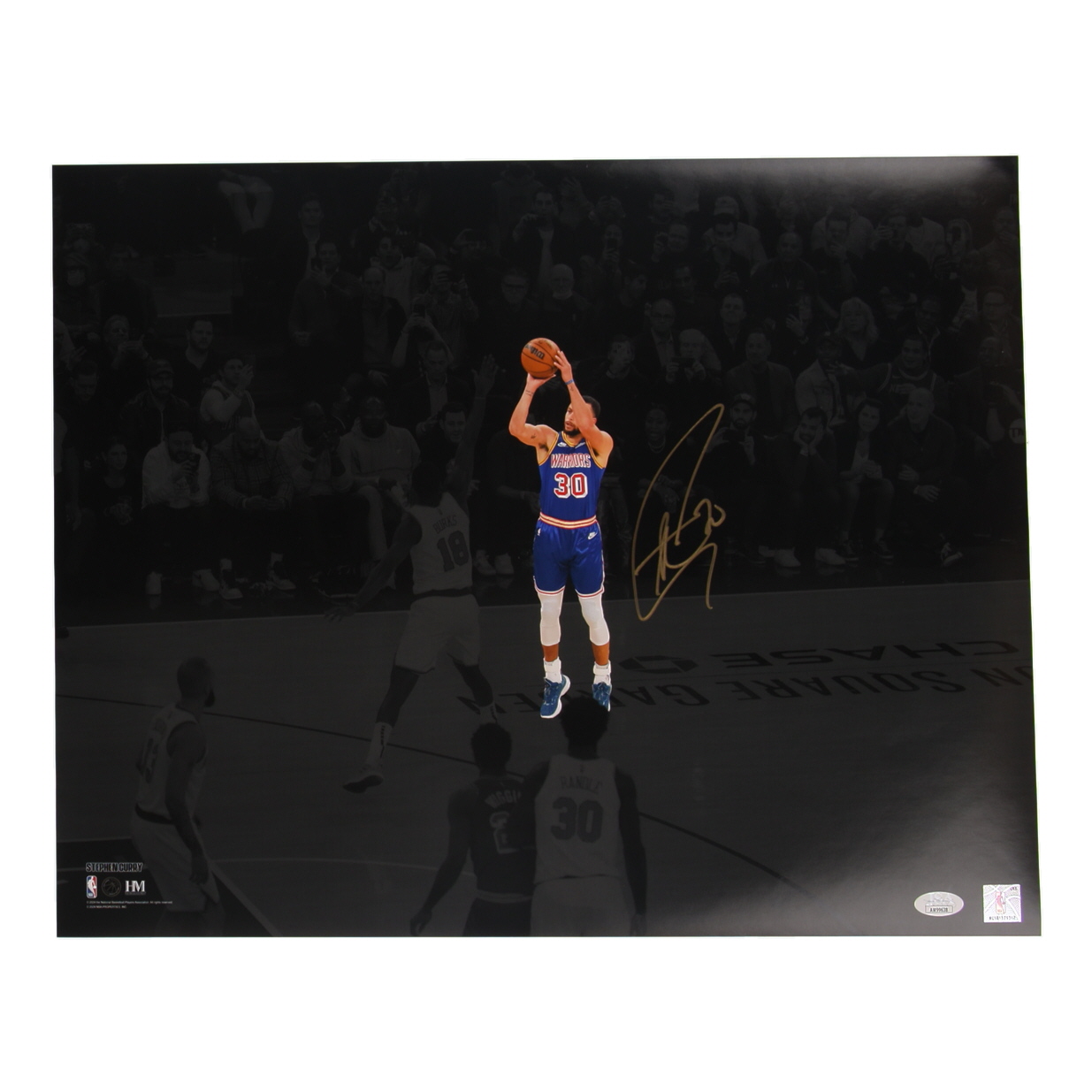 Photo measures 16" x 20" in size and has been hand-signed by Steph Curry (Golden State Warriors).