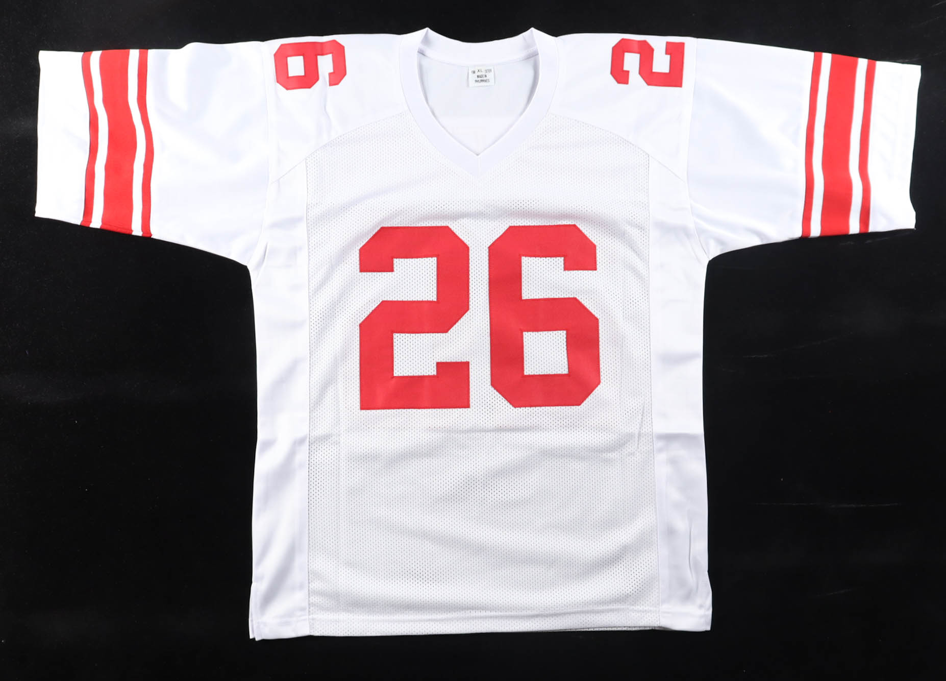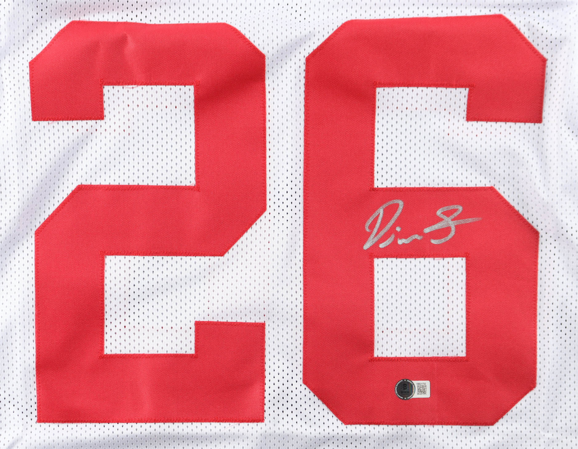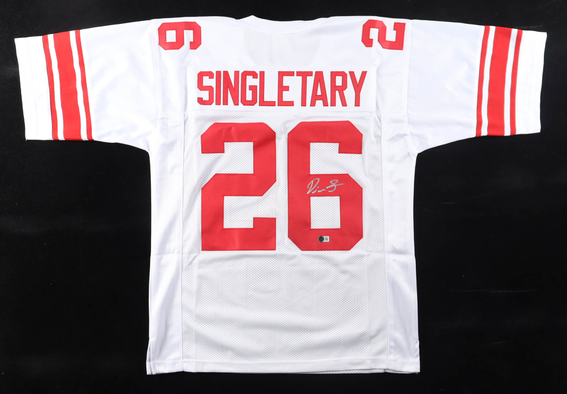 Custom jersey with everything sewn on, size XL. Hand-signed by Devin Singletary.