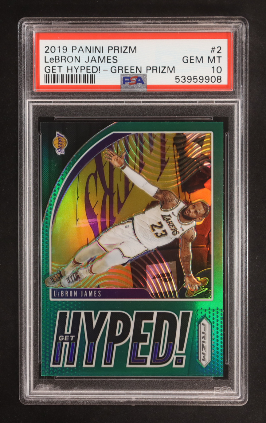 LeBron James 2019-20 Panini Prizm Get Hyped! Prizms Green #2 (PSA 10)