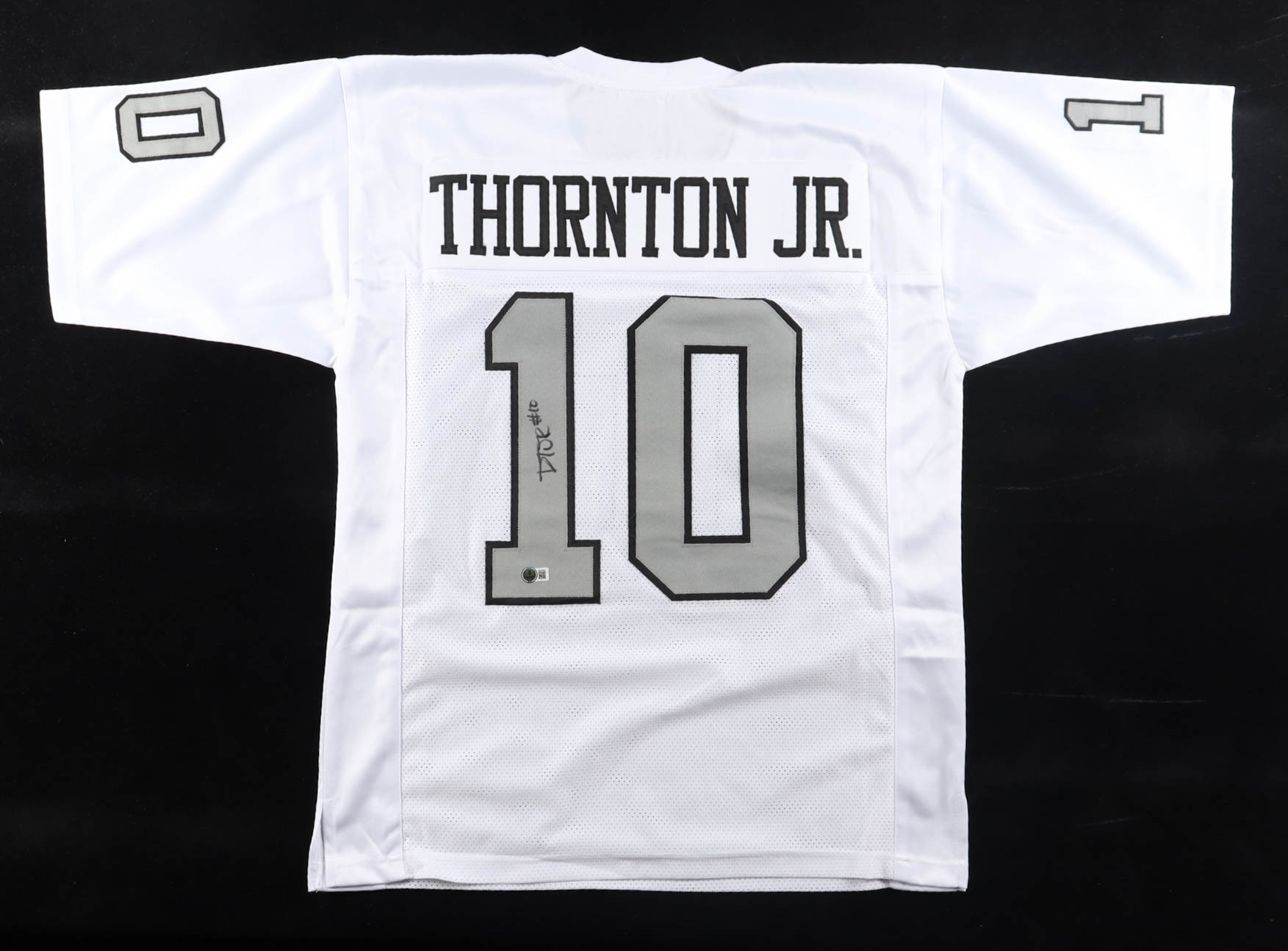Custom jersey with everything sewn on, size XL. Hand-signed by Dont'e Thornton.