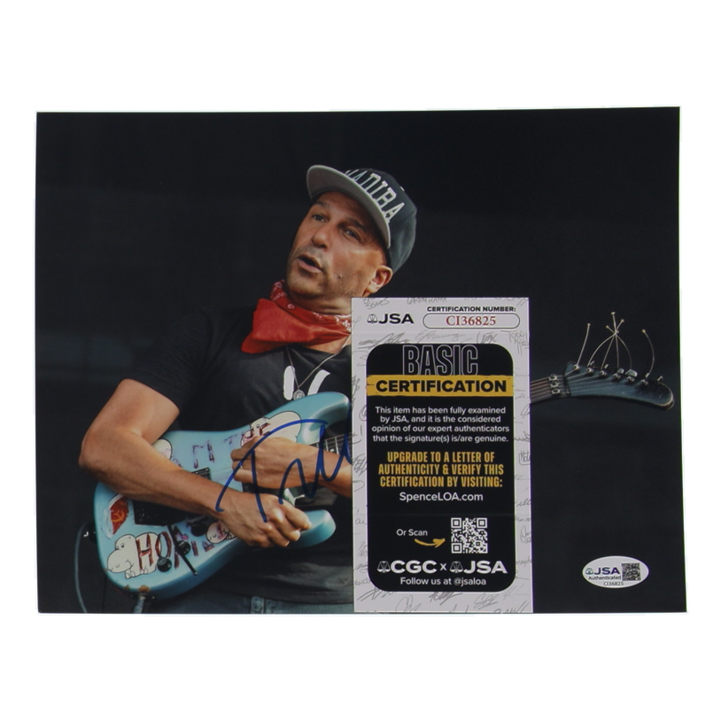 Photo measures 8" x 10" in size and has been hand-signed by Tom Morello.