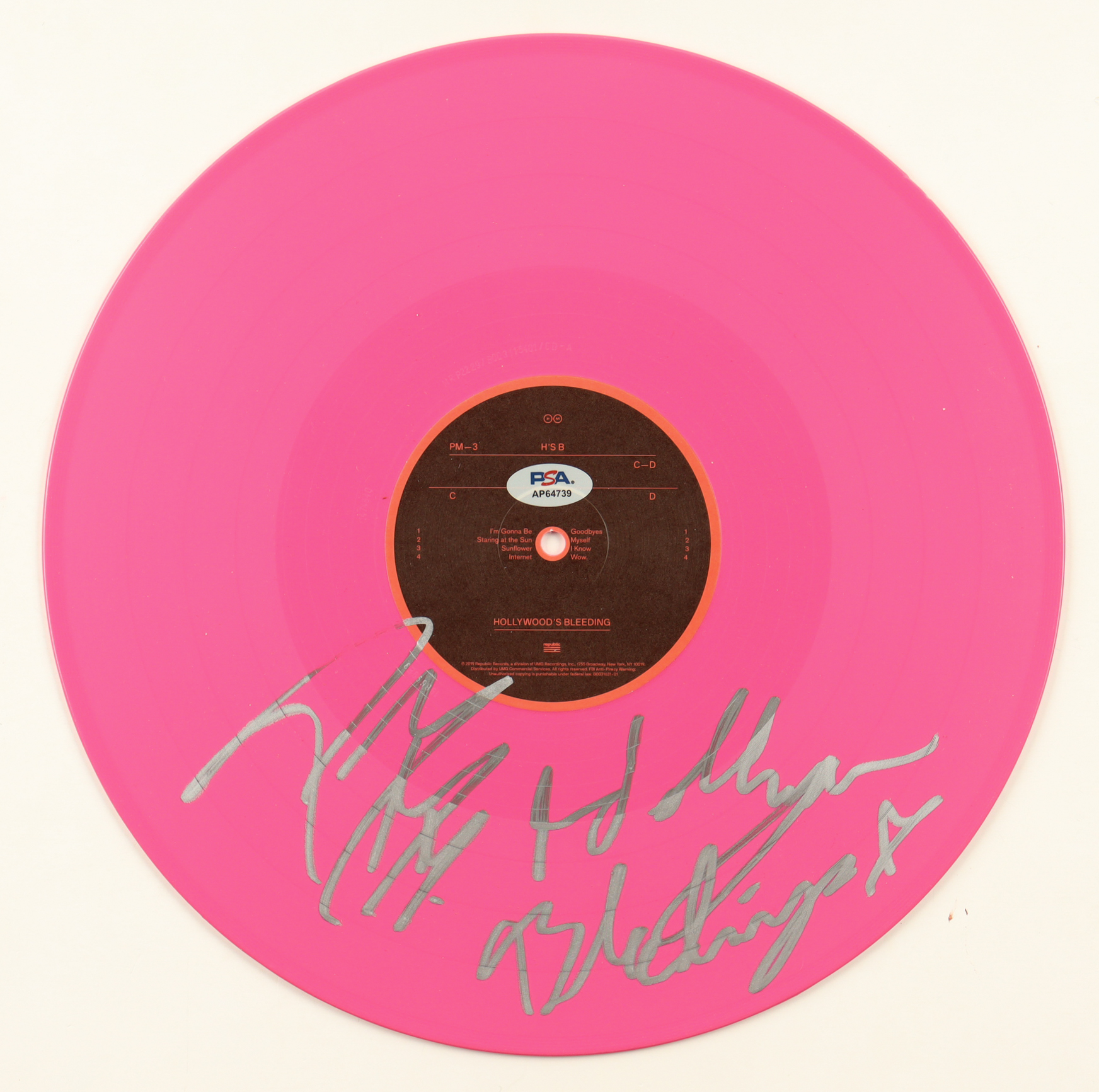 "Hollywood's Bleeding" Vinyl Record, hand-signed by Post Malone. Please see photos for details regarding the item.