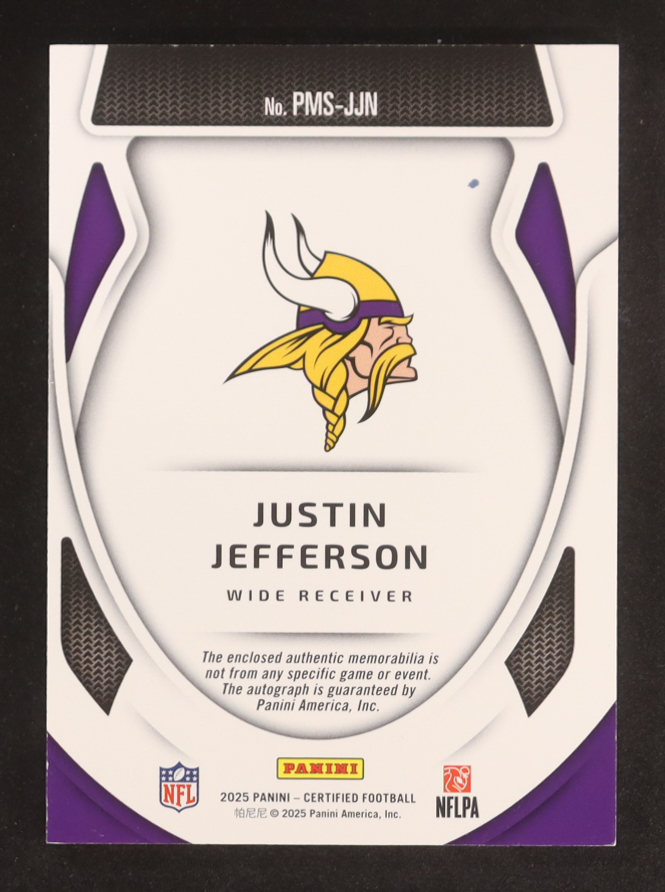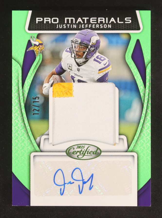 Justin Jefferson 2025 Certified Pro Materials Signatures Lime Green #2 #12/15