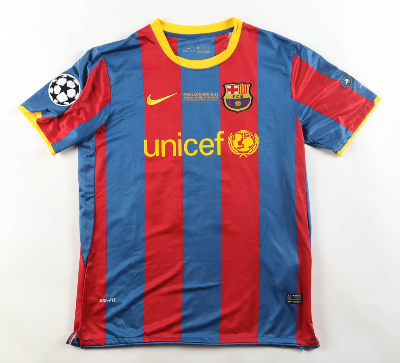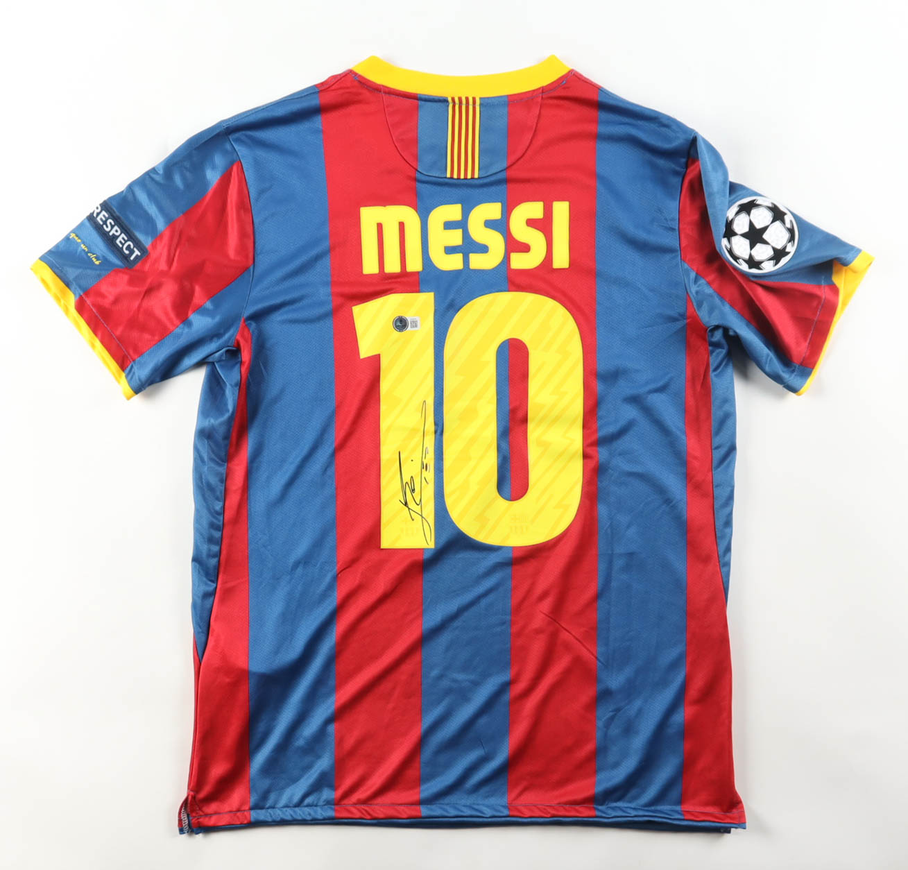 Nike authentic jersey with everything pressed on, size L. Hand-signed by Lionel Messi (Barcelona National Football Team).