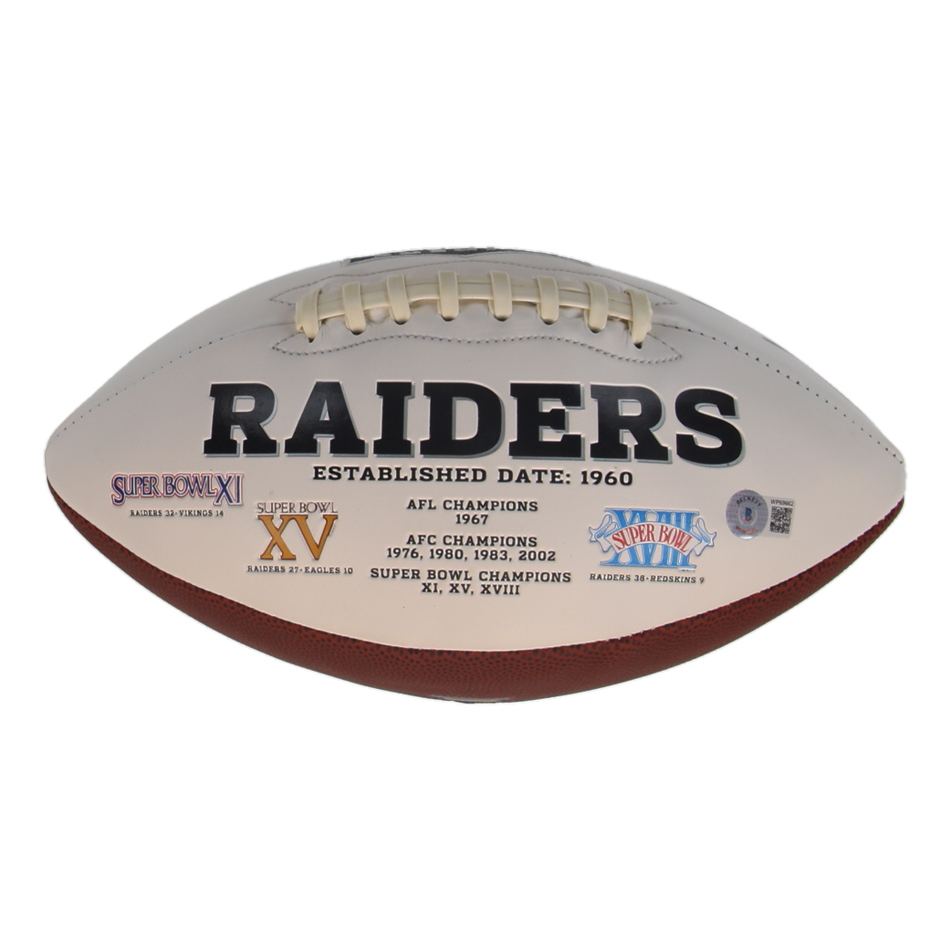 Oakland Raiders logo football has been hand-signed by Shane Lechler. Please note, there is some staining on the football.