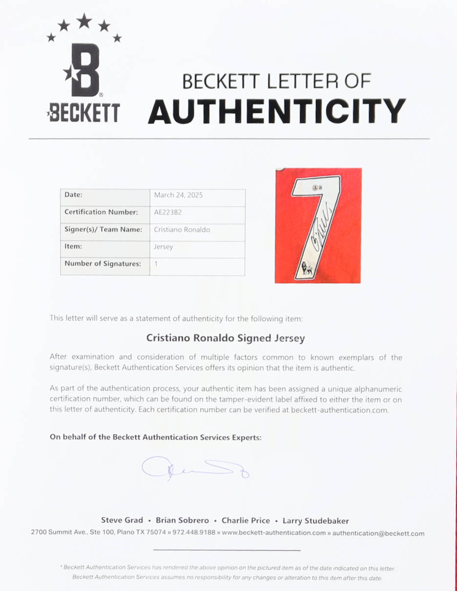 Cristiano Ronaldo Signed Manchester United Nike Authentic Jersey (Beckett)