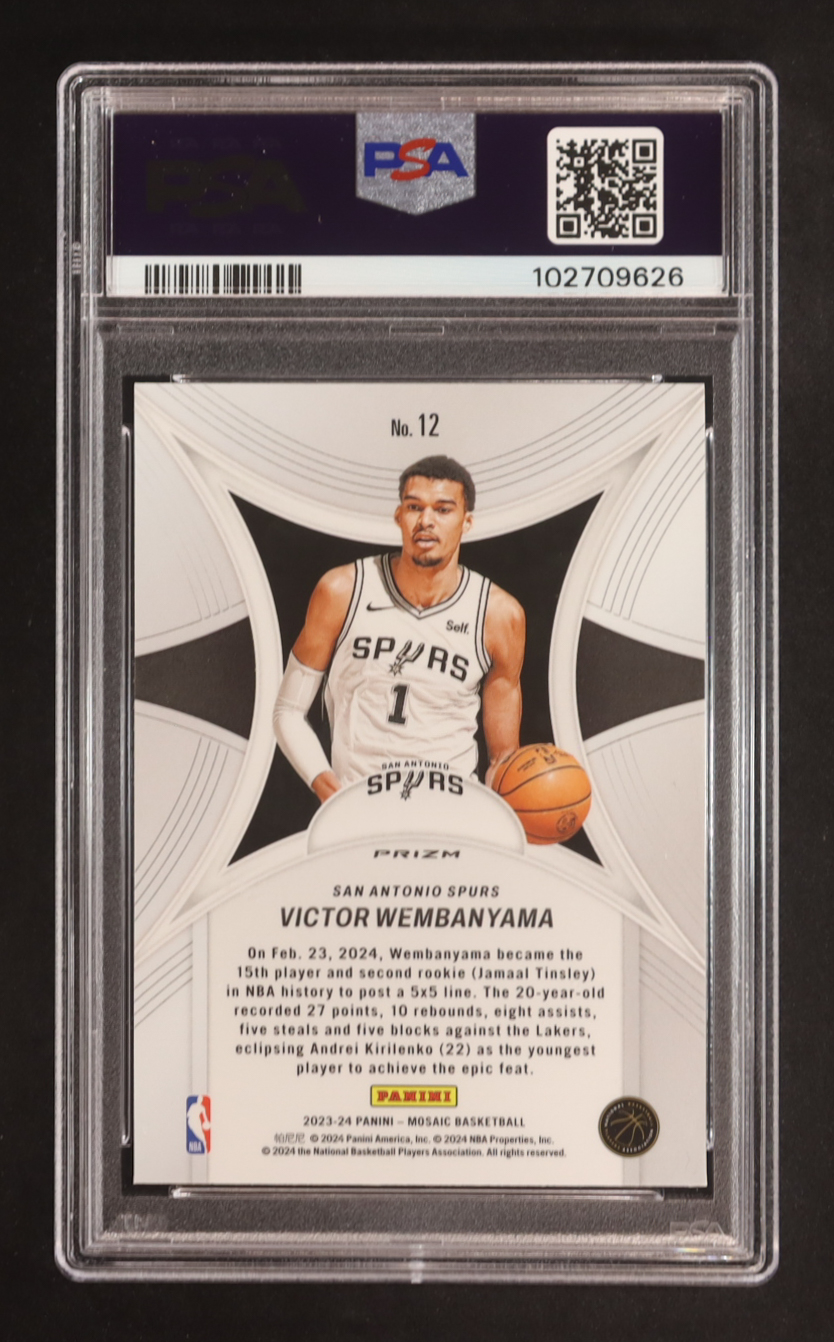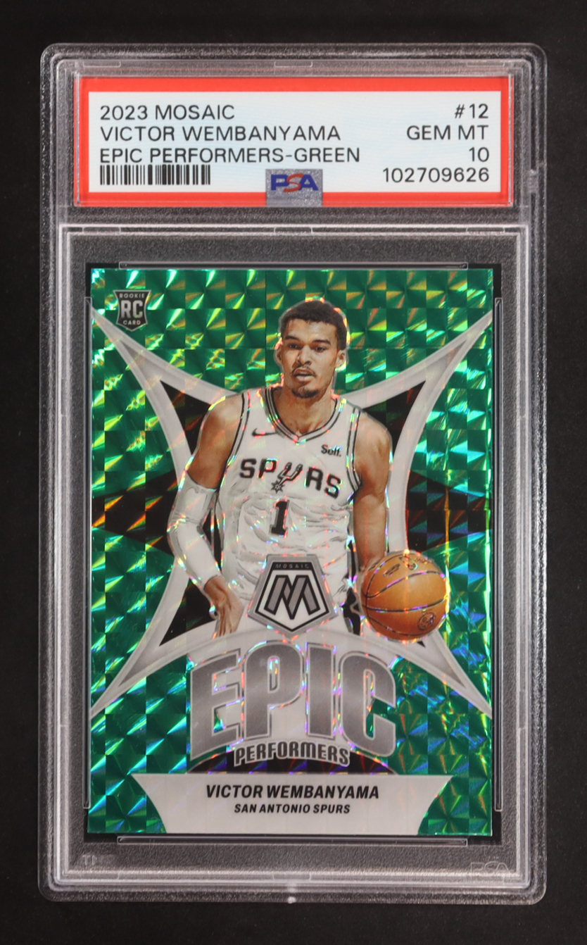 Victor Wembanyama 2023-24 Panini Mosaic Epic Performers Mosaic Green #12 RC (PSA 10)