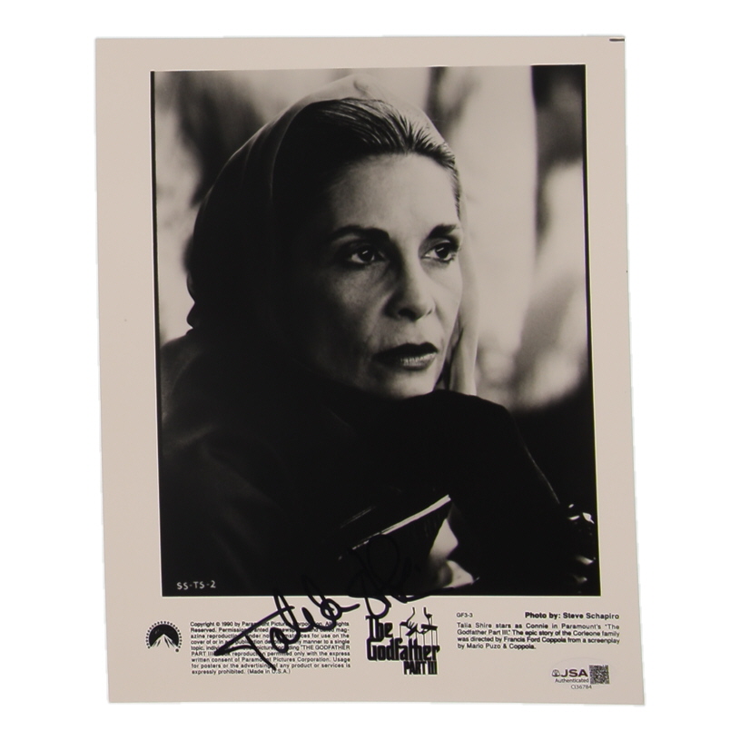 Photo measures 8" x 10" in size and has been hand-signed by Talia Shire.
