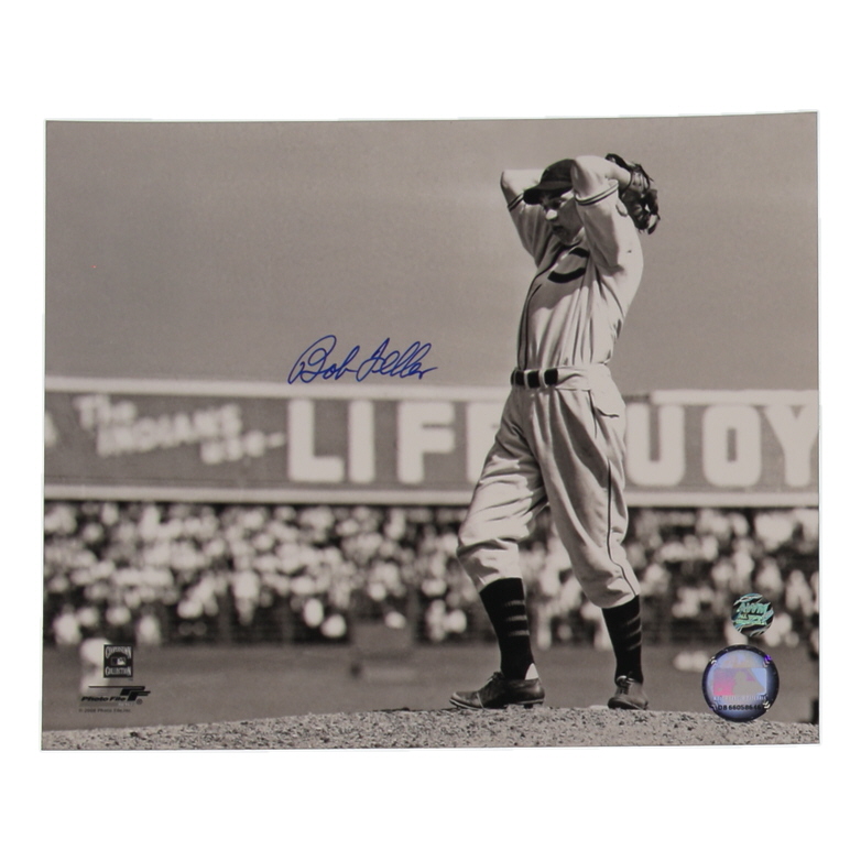 Photo measures 8" x 10" in size. Hand-signed by Bob Feller (D. 2010, Cleveland Indians, HOF).
