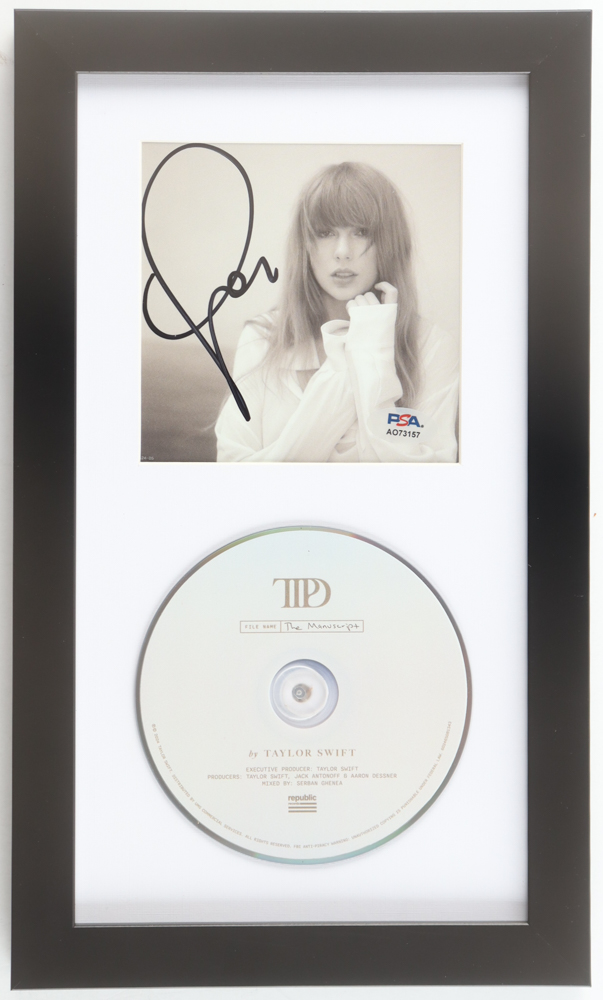 Custom frame measures approximately 8" x 13.5" in size. Features a "The Torture Poets Department" CD insert that has been hand-signed by Taylor Swift and includes the disc as shown.
