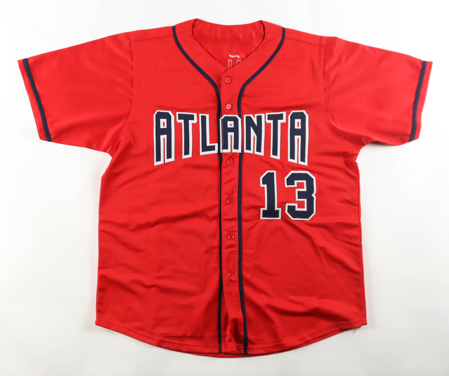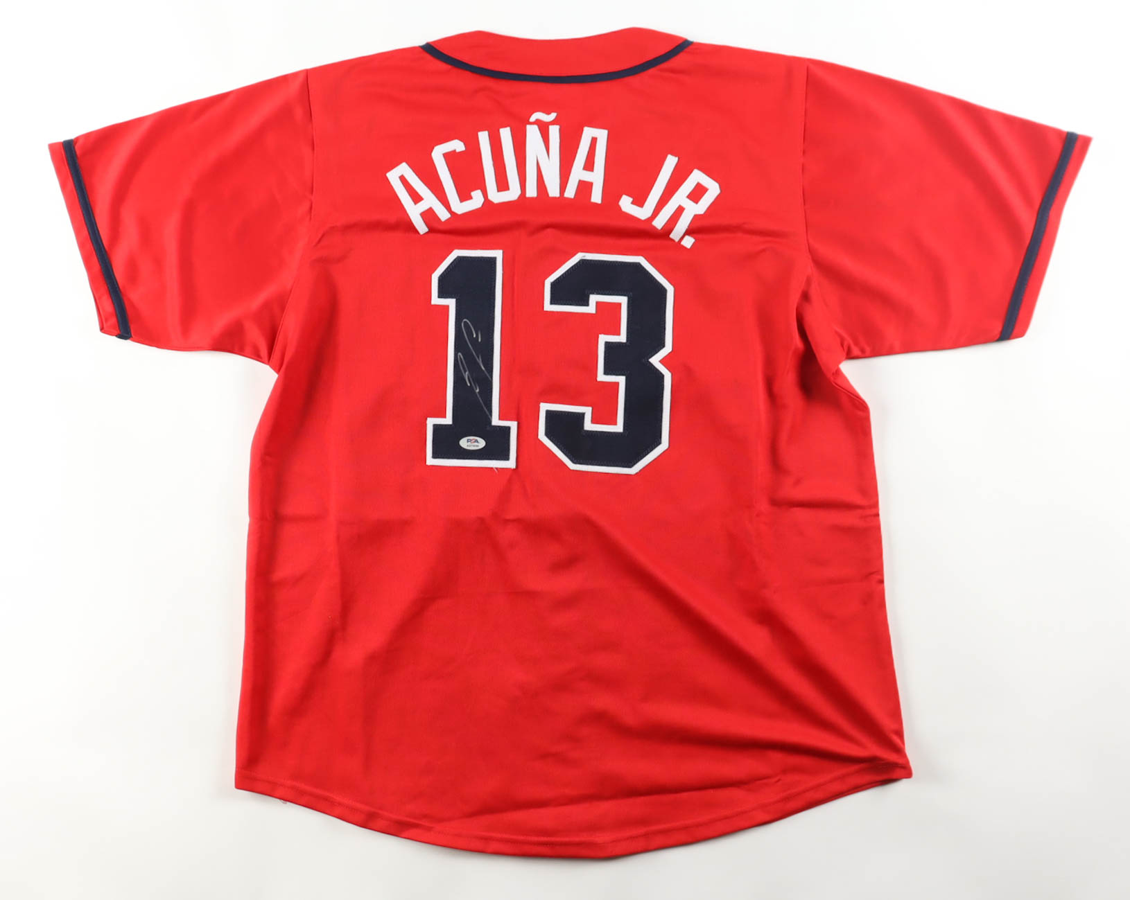 Custom jersey with everything sewn on, size XL. Hand-signed by Ronald Acuna Jr.