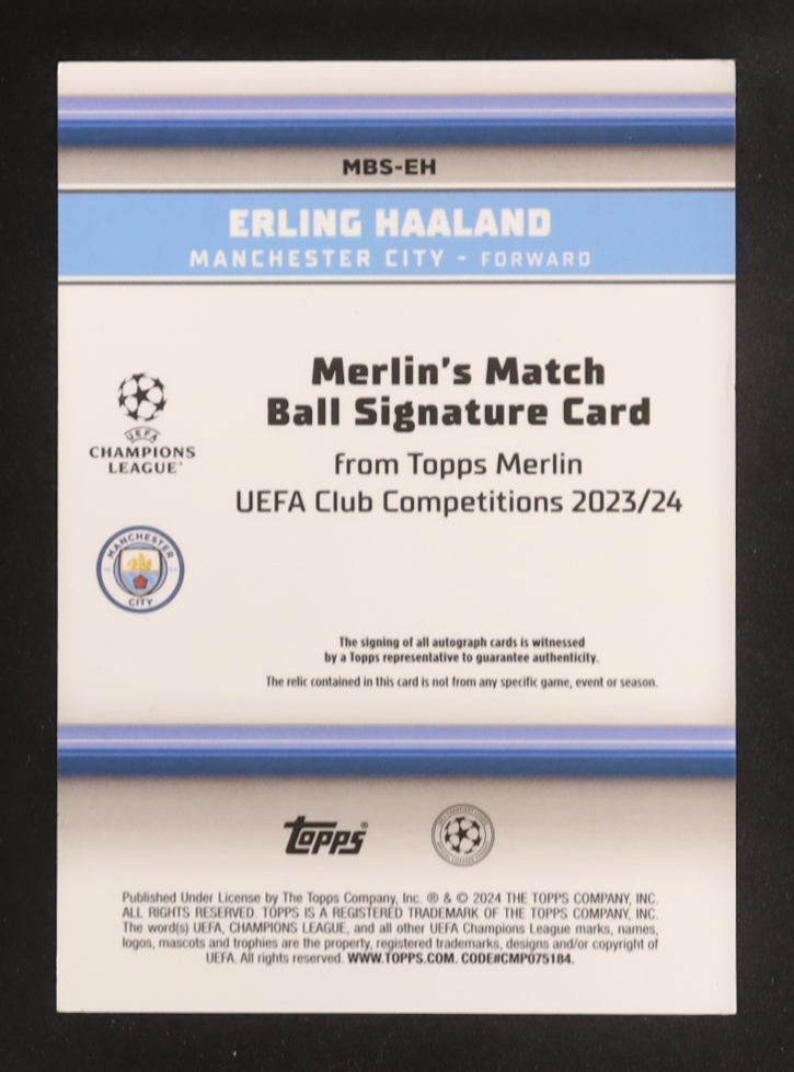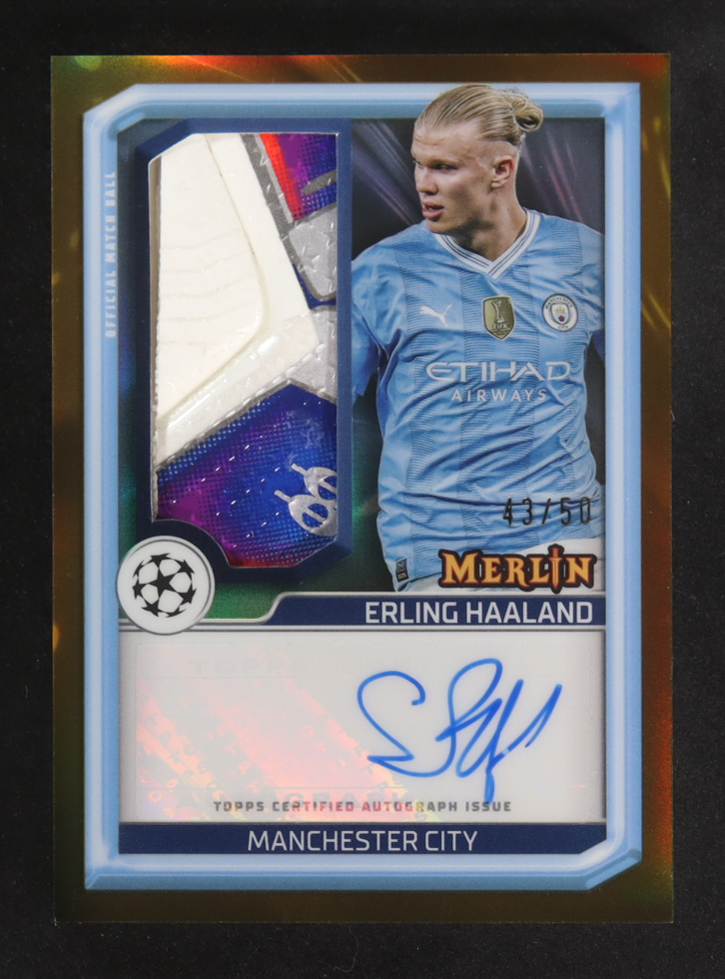 Erling Haaland 2023-24 Merlin UEFA Club Competitions Merlins Match Ball Signatures Gold Refractors #MBSEH #43/50
