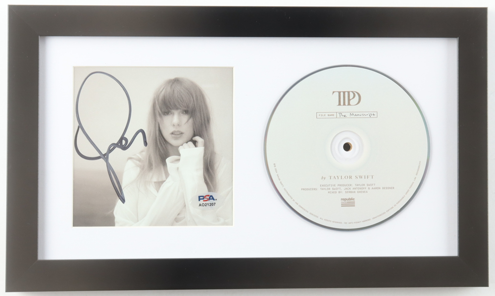 Custom frame measures approximately 8" x 13.5" in size. Features a "The Torture Poets Department" CD insert that has been hand-signed by Taylor Swift and includes the disc as shown.