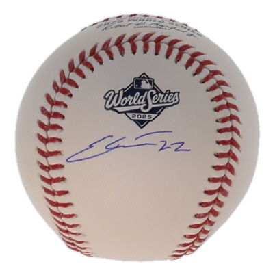 Rawlings Official 2025 World Series logo baseball. Hand-signed by Ernie Clement (Toronto Blue Jays).