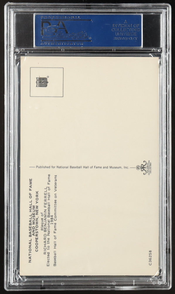 Rick Ferrell Signed Hall Of Fame Plaque Postcard (PSA)