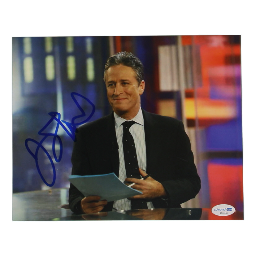Photo measures 8" x 10" in size and has been hand-signed by Jon Stewart.