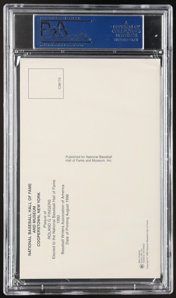 Rollie Fingers Signed Hall Of Fame Plaque Postcard (PSA)