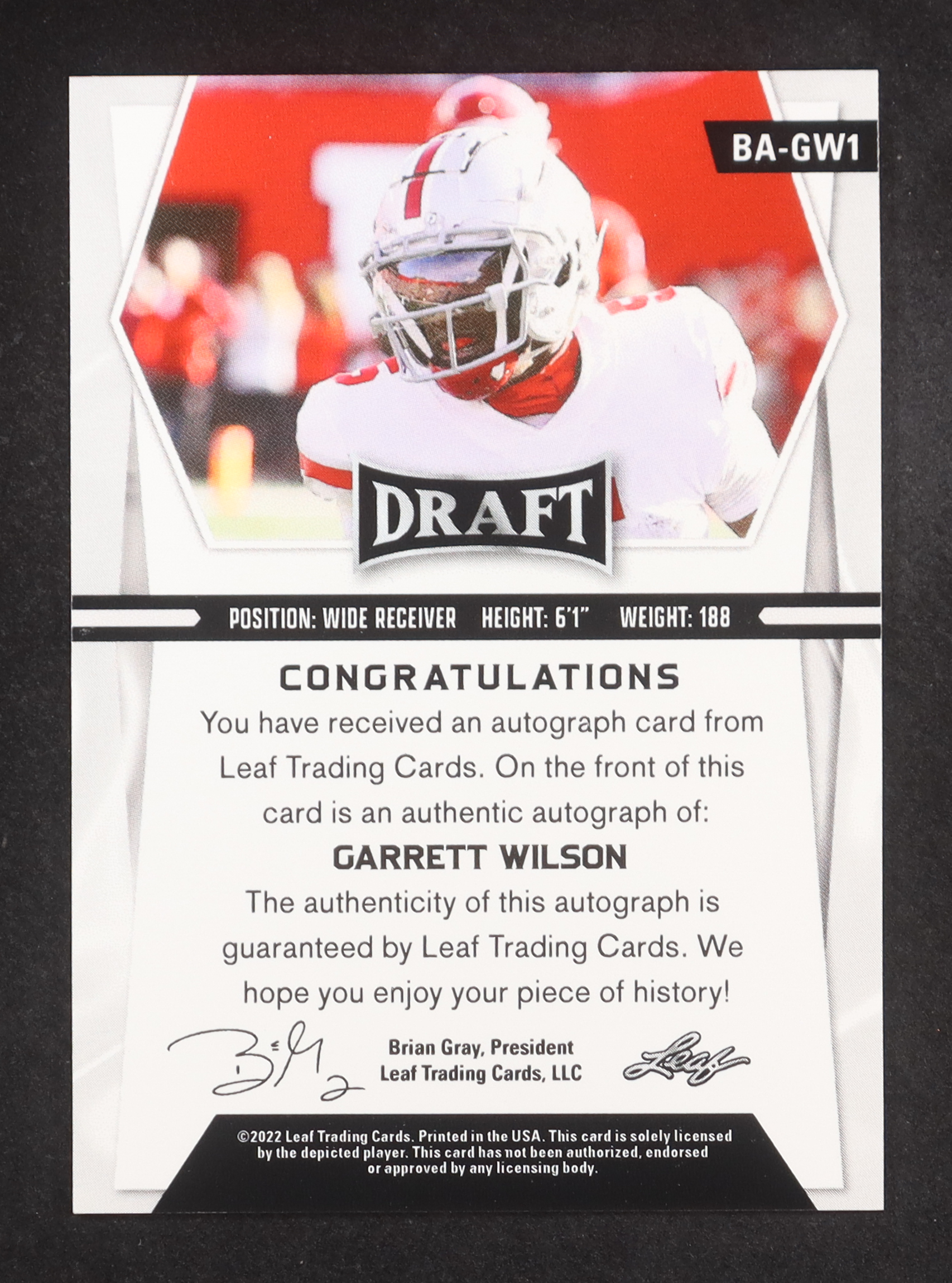 Garrett Wilson 2022 Leaf Draft Autographs #BAGW1 RC