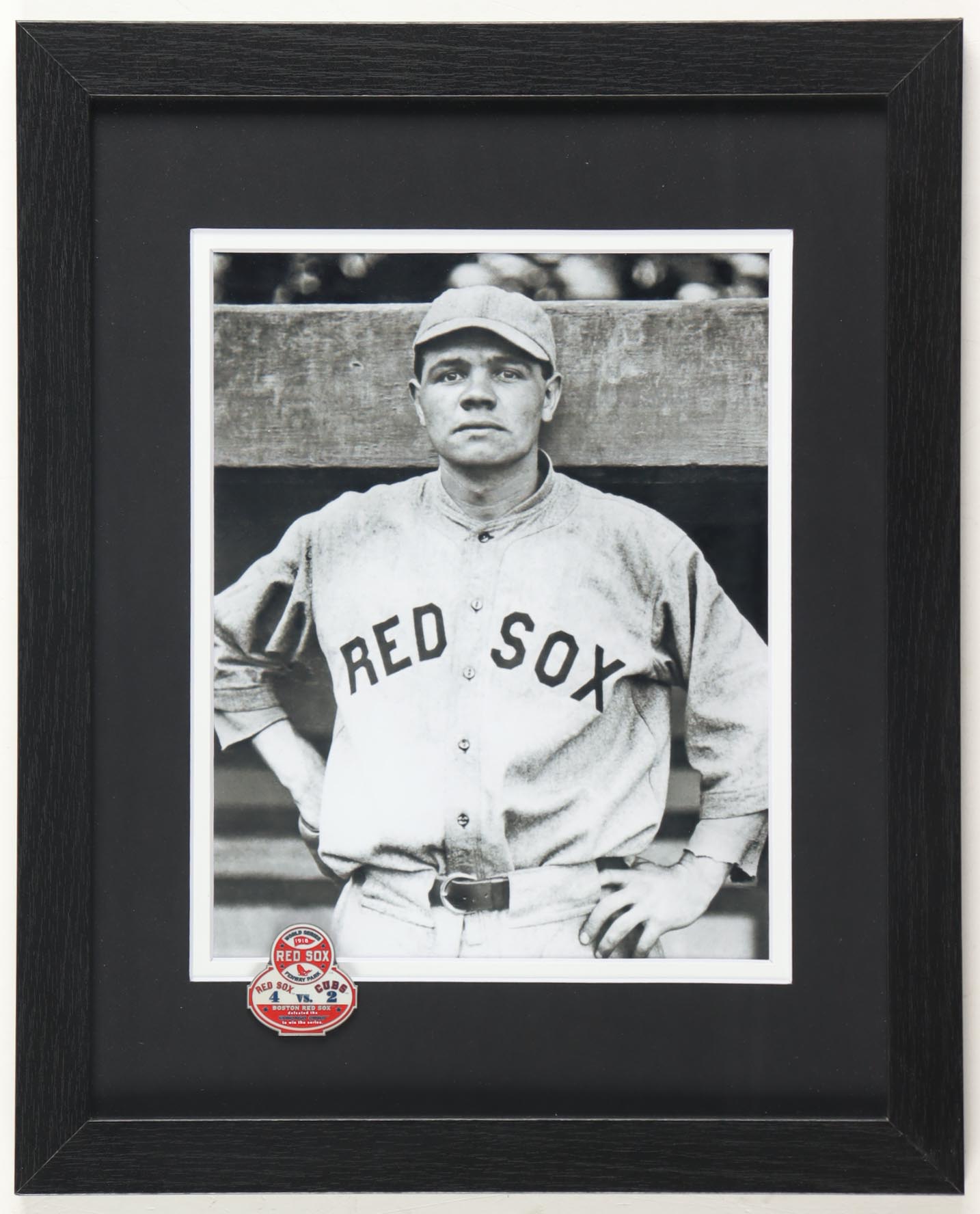 "Babe Ruth Red Sox" Custom Framed Photo Display with Red Sox World Series Pin