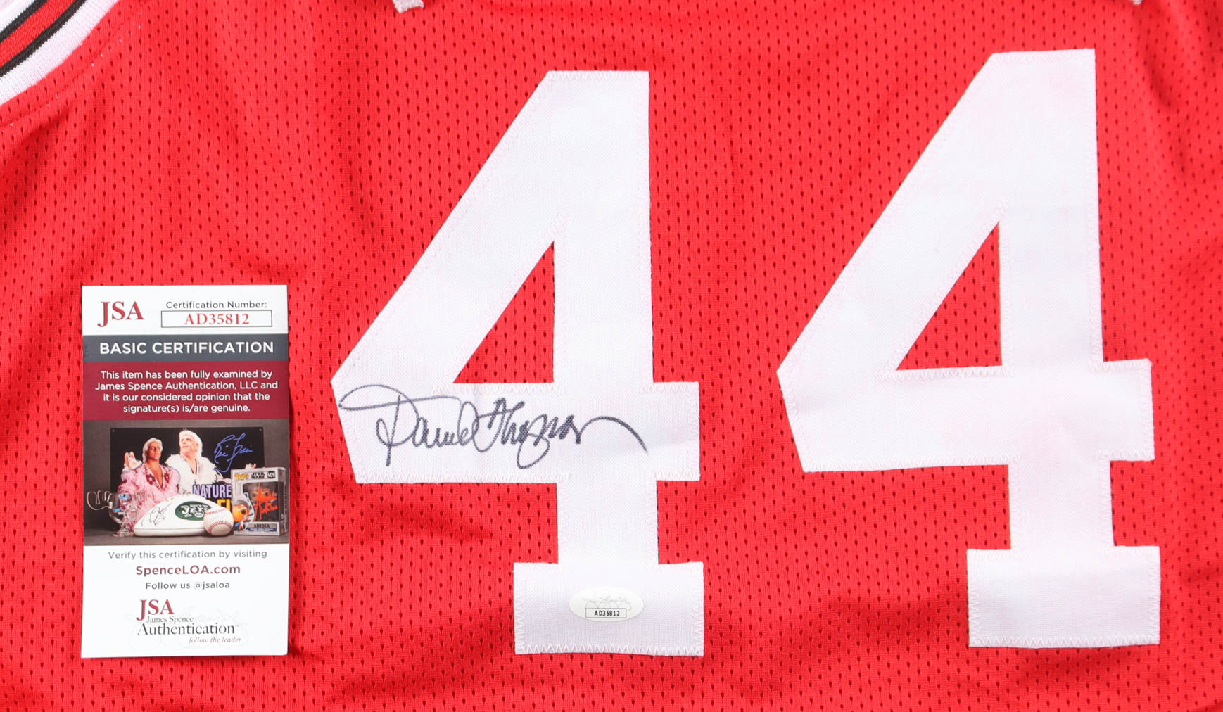 Custom jersey with everything sewn on, size XL. Hand-signed by David Thompson (HOF). Please note, glue is visible through the reverse number. See photos regarding the condition of the item.