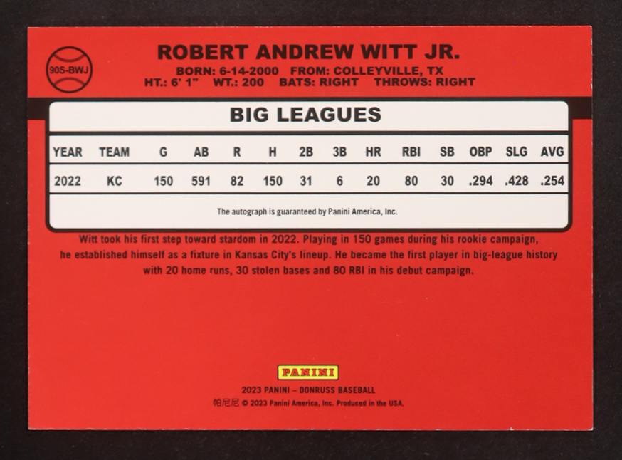 Bobby Witt Jr. 2023 Donruss Retro '90 Signatures Red #100 #83/99