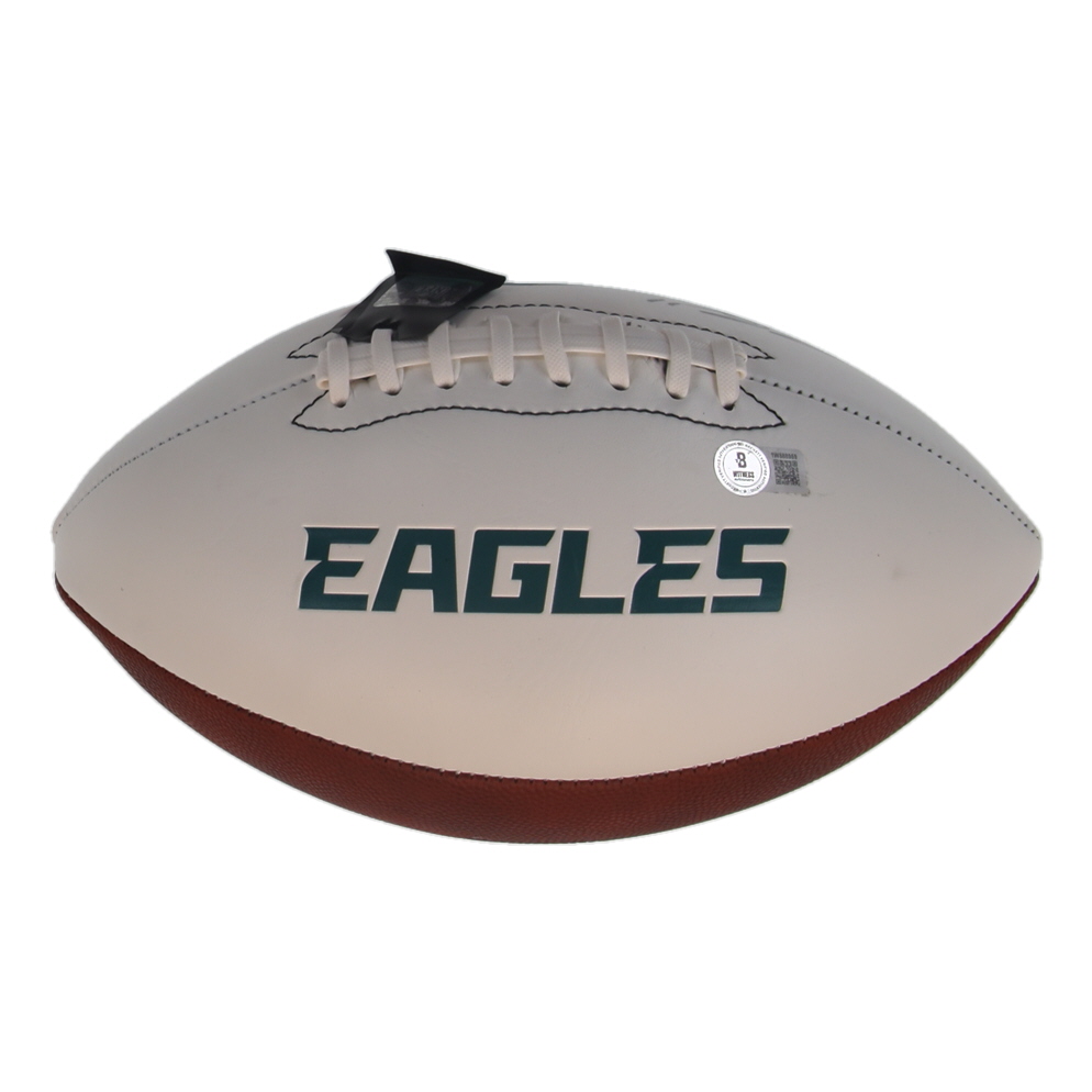 Philadelphia Eagles logo football has been hand-signed by A. J. Brown.