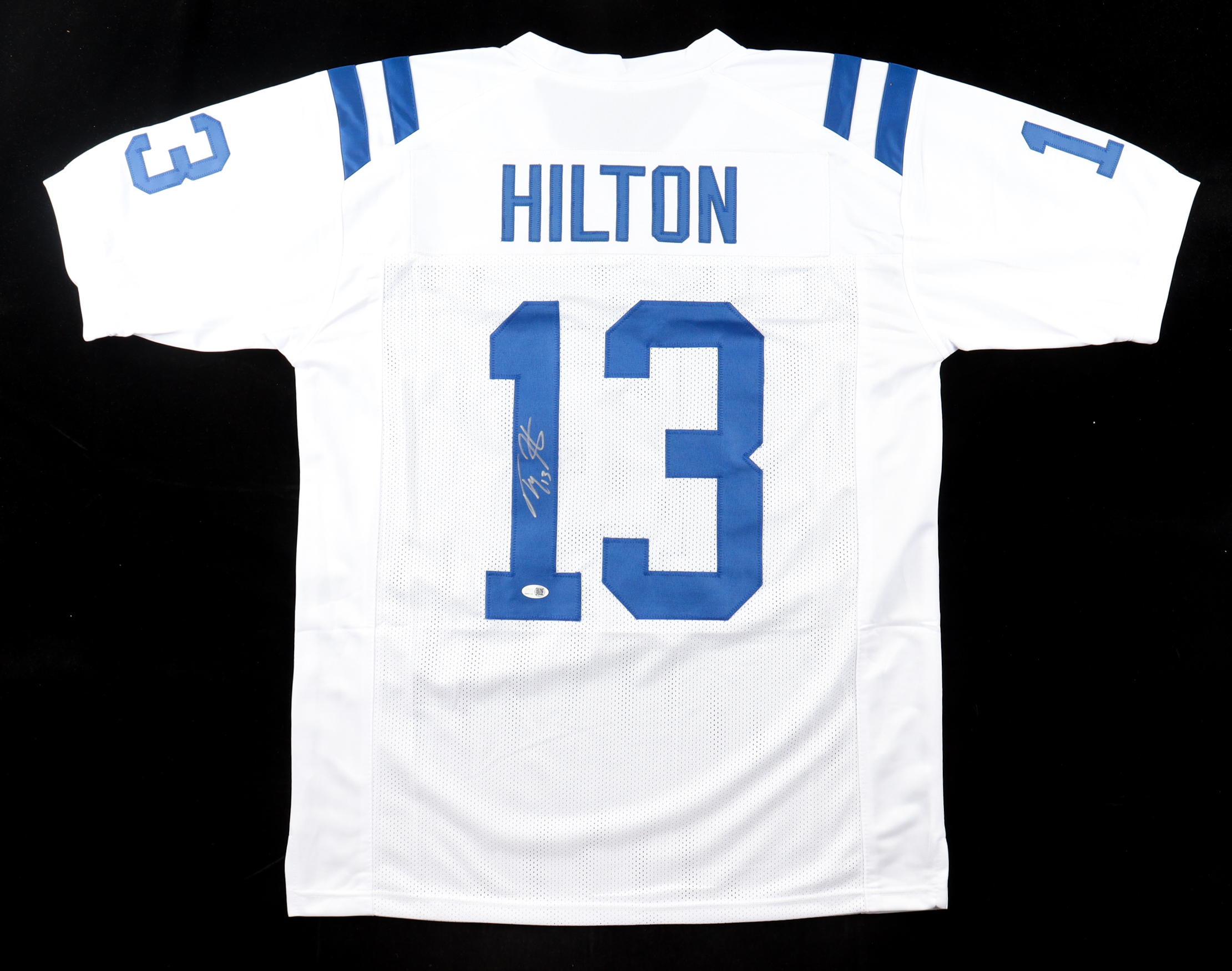 Custom jersey with everything sewn on, size XL. Hand-signed by T. Y. Hilton (Indianapolis Colts).