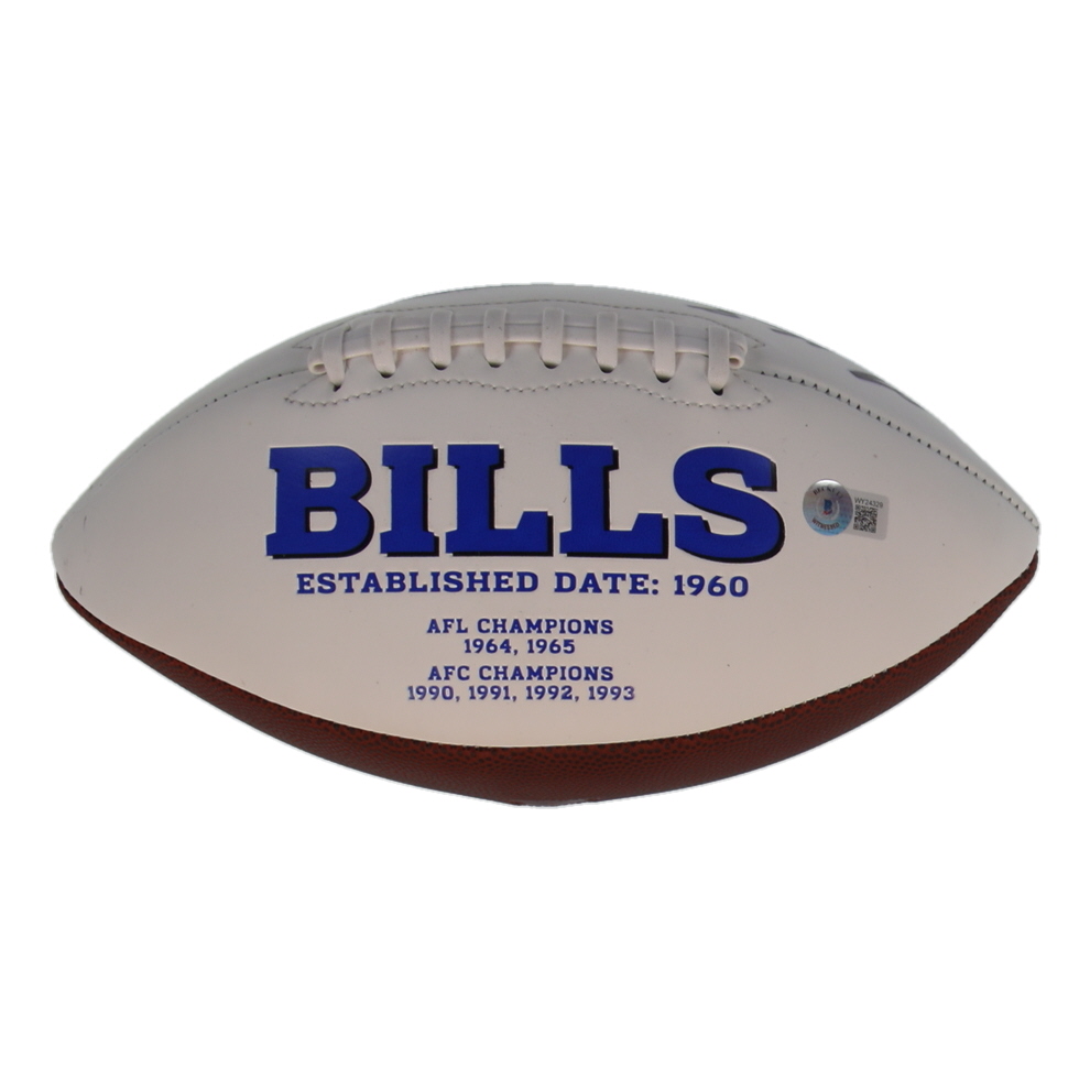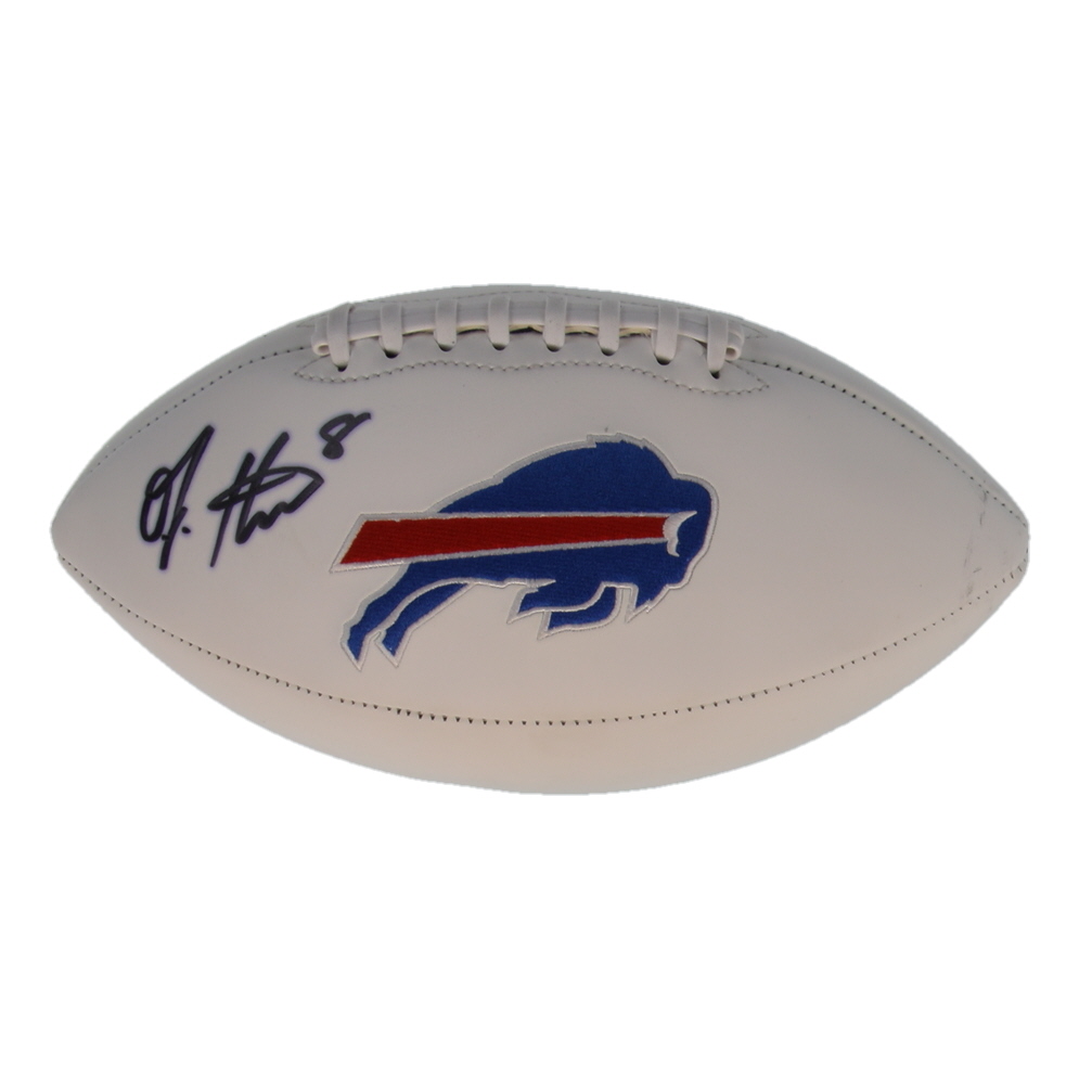 Buffalo Bills logo football has been hand-signed by O. J. Howard. Please note, there is staining on the football and the air valve is damaged.