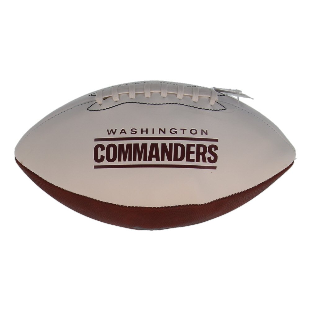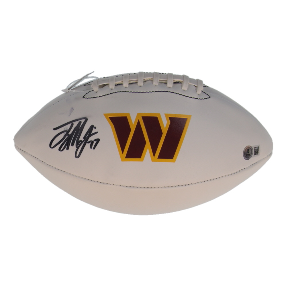Franklin Washington Commanders Logo White Panel Football. Hand-signed by Terry McLaurin. Please note, there is smudging on the autograph.