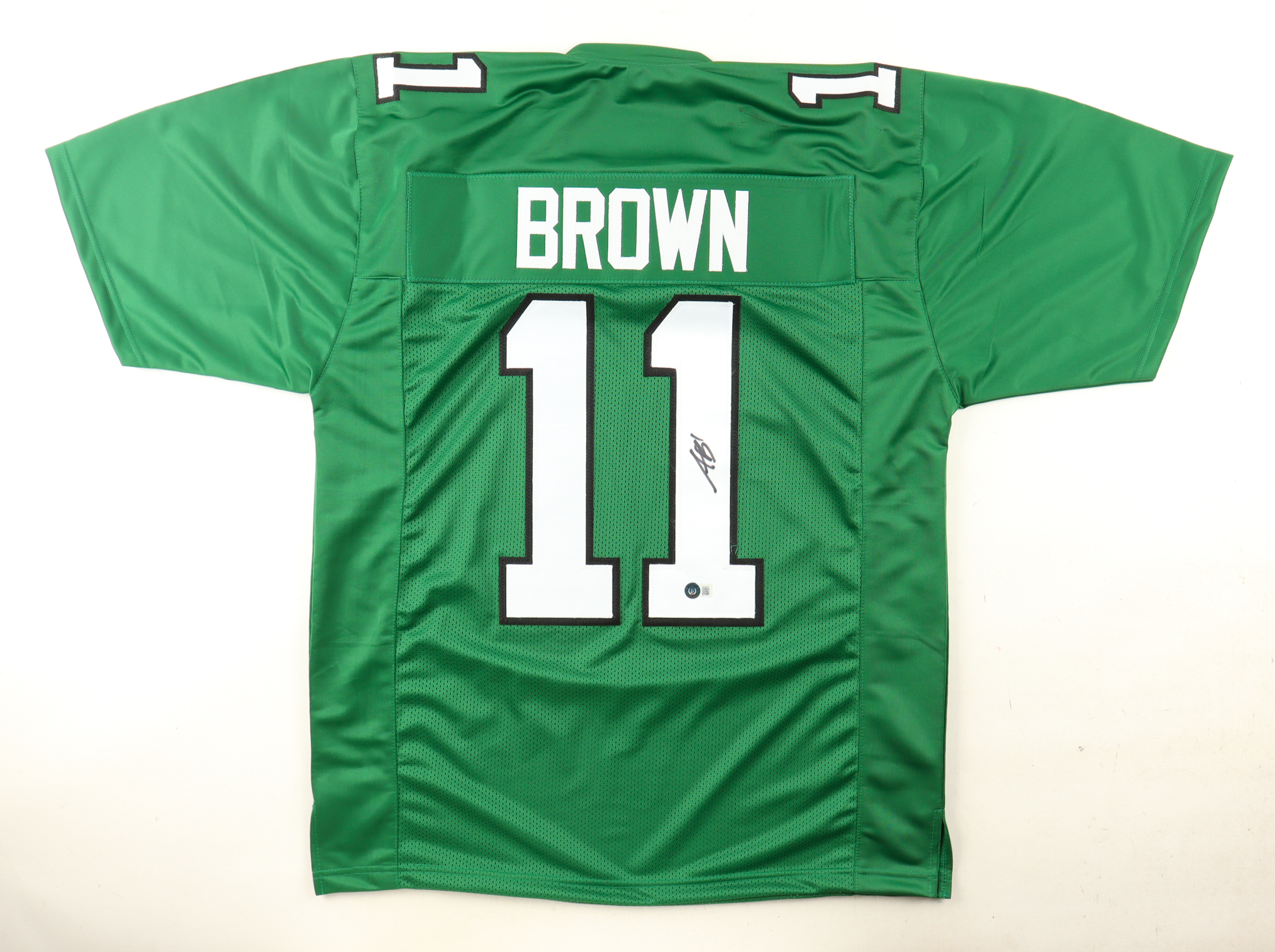 Custom jersey with everything sewn on, size XL. Hand-signed by AJ Brown.