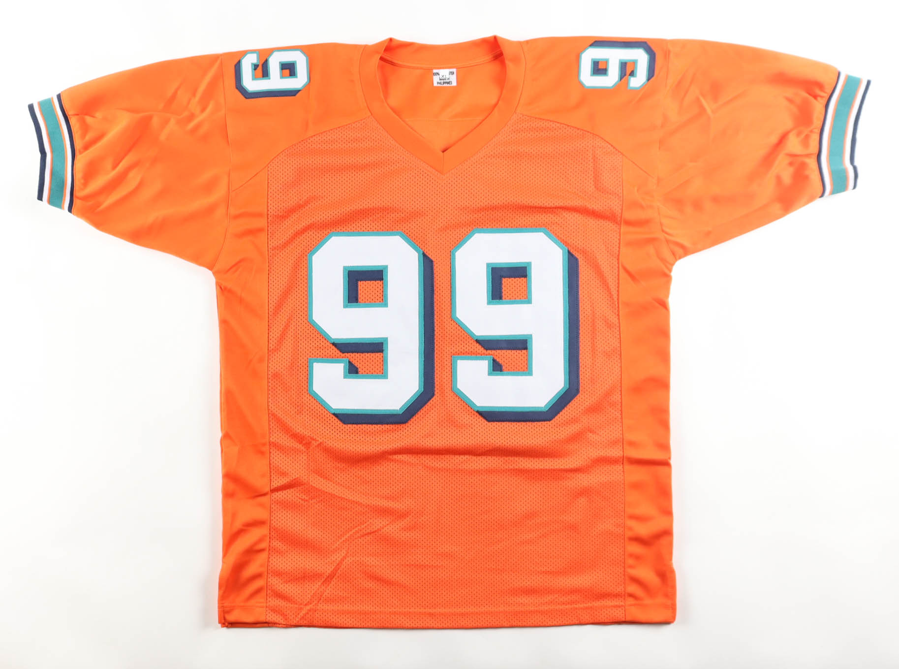 Custom jersey with everything sewn on, size XL. Hand-signed by Jason Taylor.