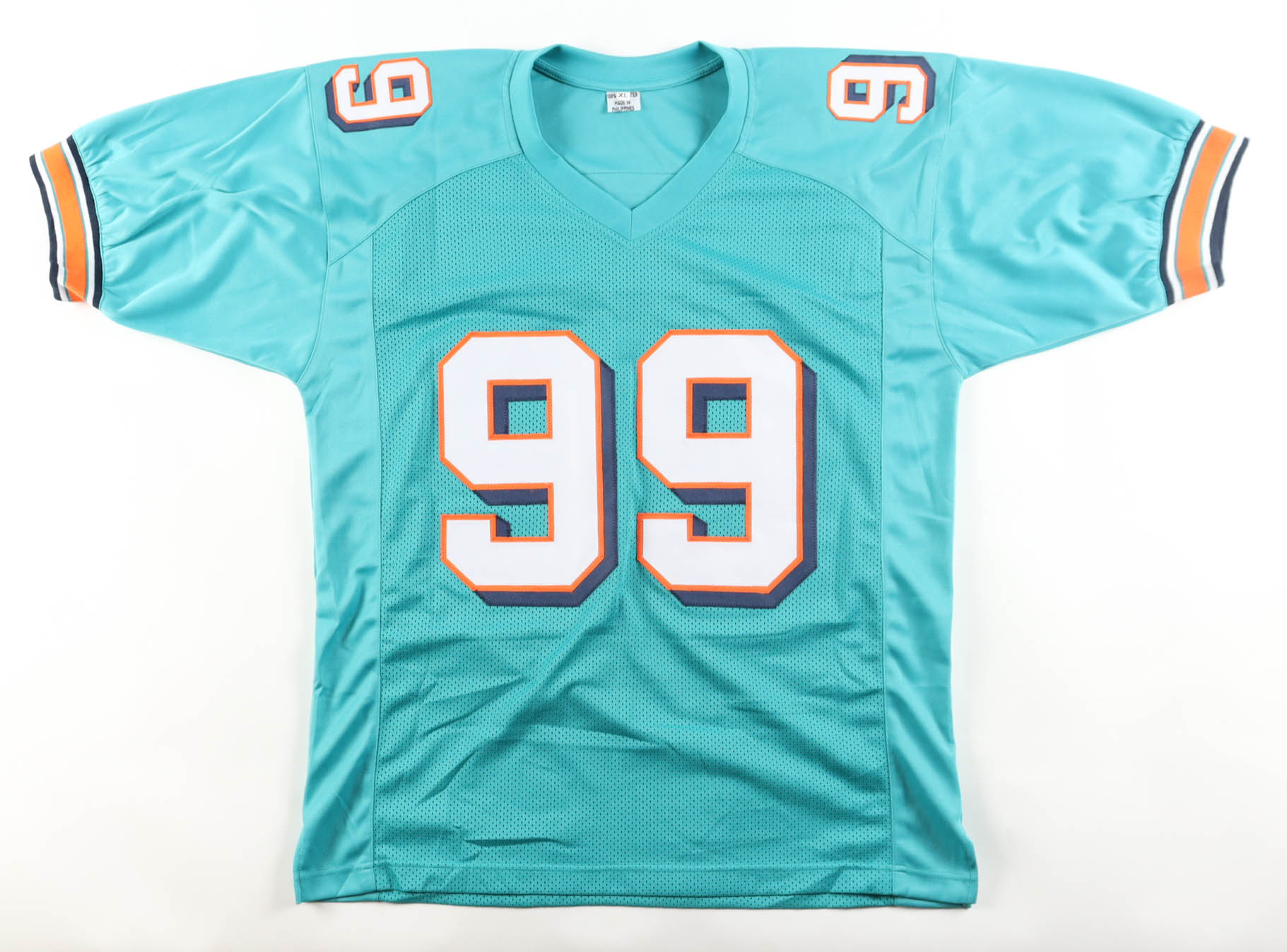 Custom jersey with everything sewn on, size XL. Hand-signed by Jason Taylor.