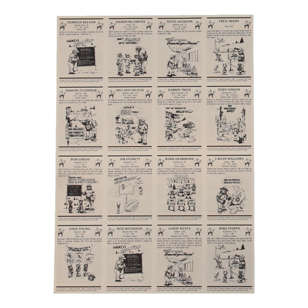 1989 Smokey Bear Purdue Boiler Legends Uncut Sheet of (16) Cards