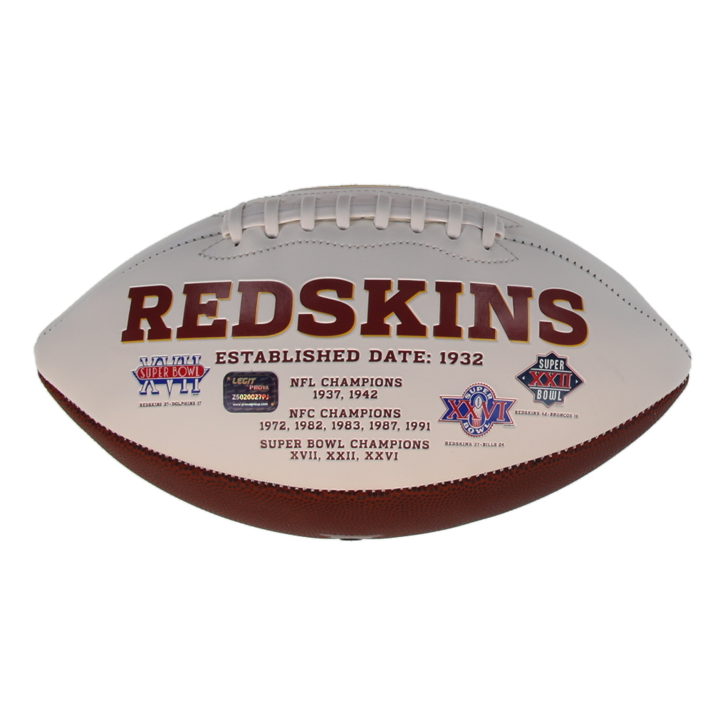 Franklin Washington Redskins logo football has been hand-signed by Joe Jacoby. Please note, the ball is stained throughout.