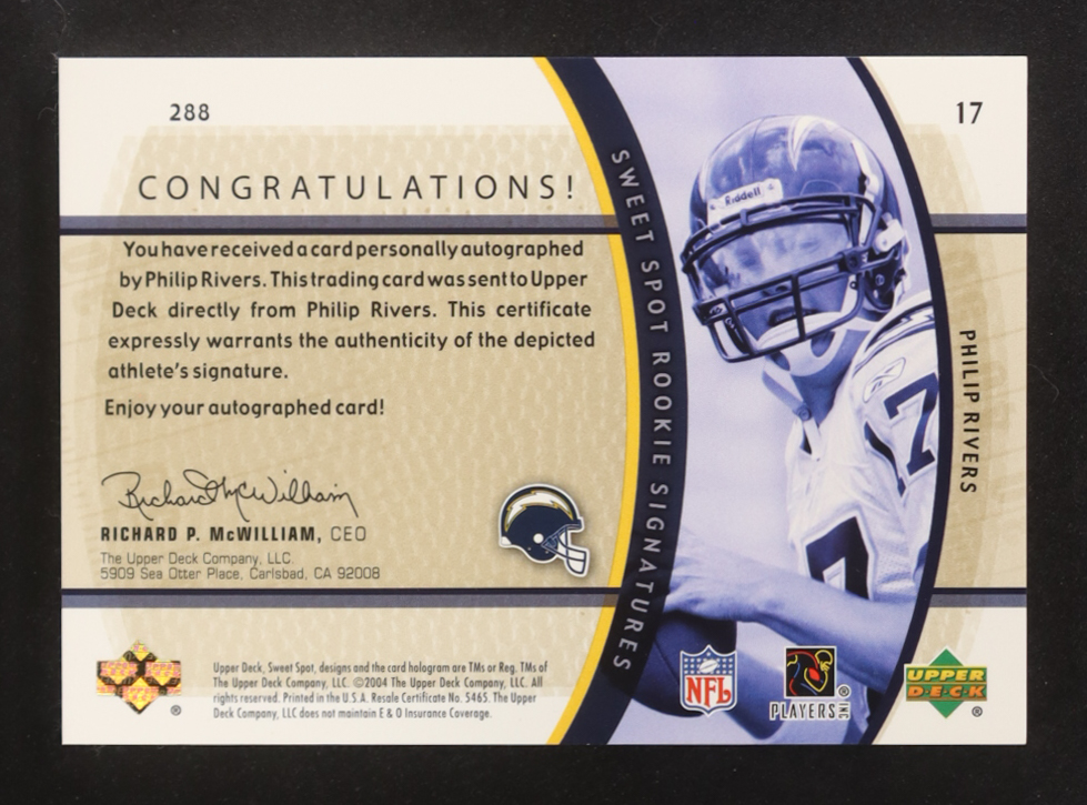 Philip Rivers 2004 Sweet Spot Gold Rookie Autographs #288 RC #96/100
