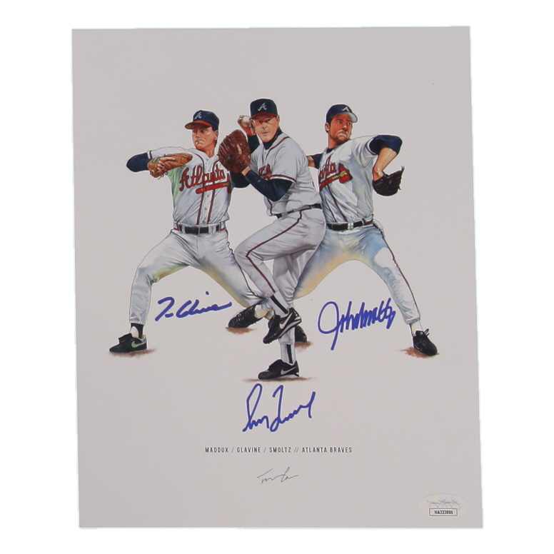 Photo measures 8" x 10" in size. Hand-signed by Tom Glavine (Atlanta Braves, HOF), Greg Maddux (Atlanta Braves, HOF), & John Smoltz (Atlanta Braves, HOF). Please see photo for more details.
