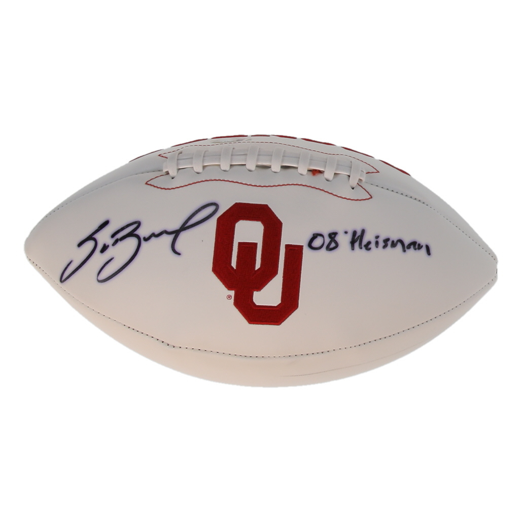 Sam Bradford Signed Oklahoma Sooners Logo Football Inscribed "08 Heisman" (Beckett)