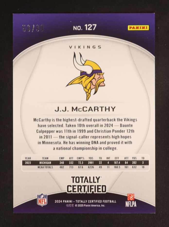 JJ McCarthy 2024 Totally Certified Mirror Neon Green #127 RC #56/99