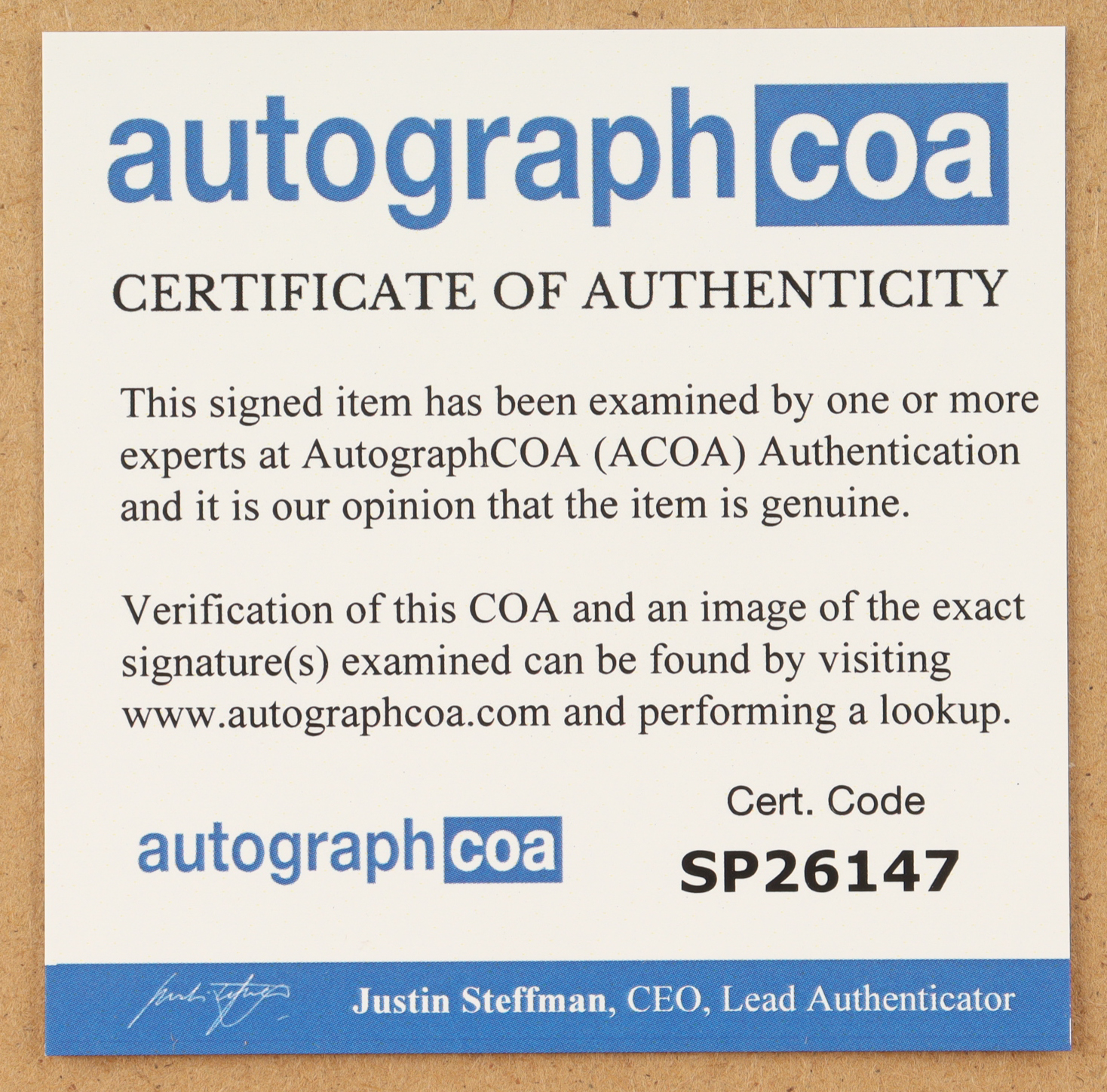 Authentication: AutographCOA LOA