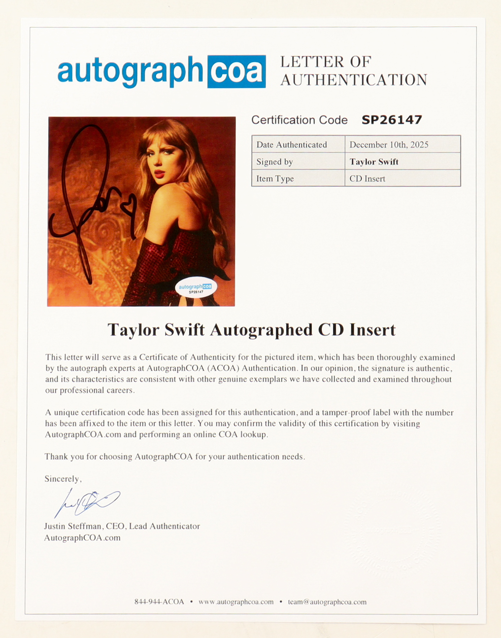 Taylor Swift Signed Custom Framed "The Life of a Showgirl" CD Insert Display with Disc (ACOA)