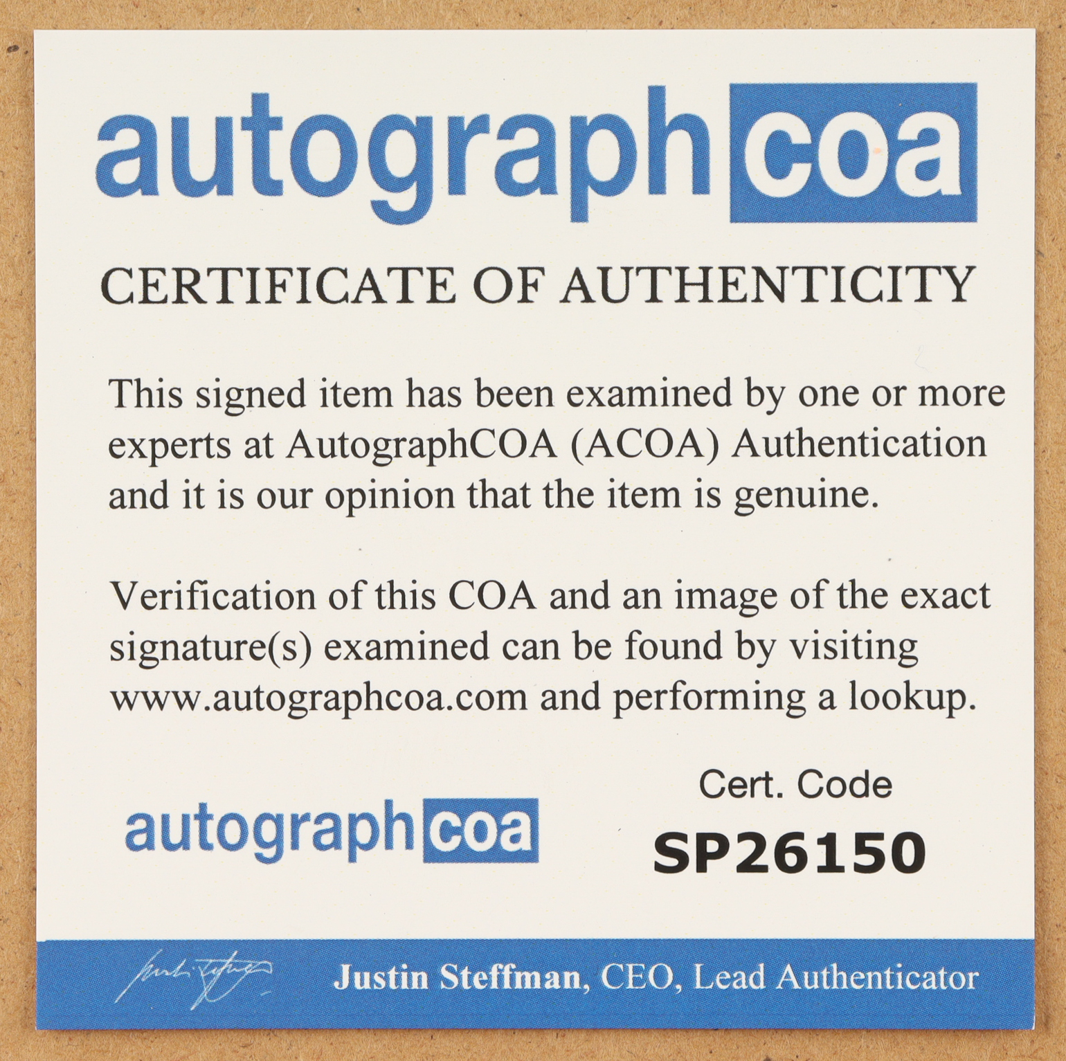 Authentication: AutographCOA LOA