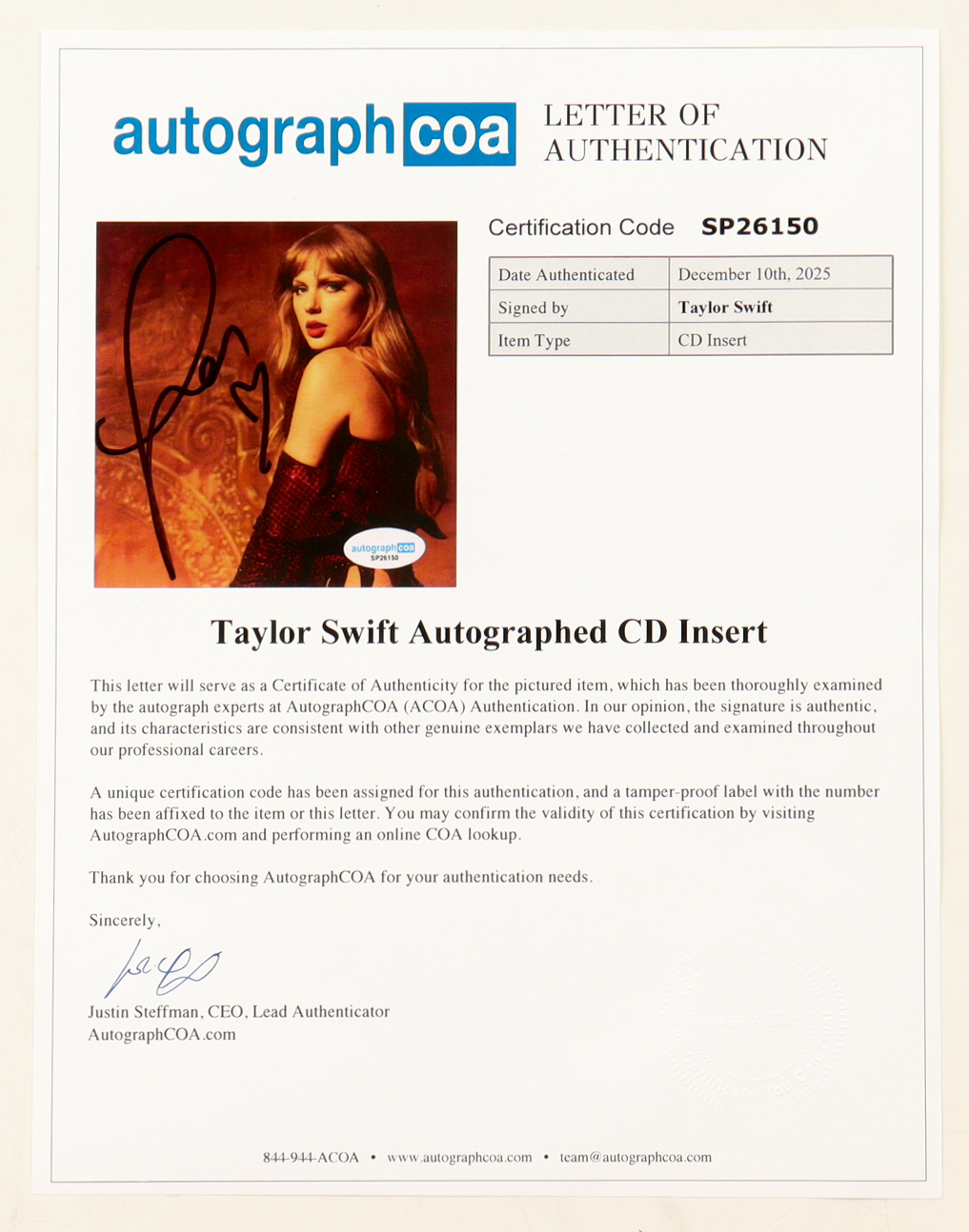 Taylor Swift Signed Custom Framed "The Life of a Showgirl" CD Insert Display with Disc (ACOA)