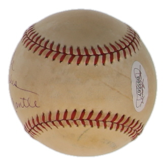 Rawlings Official American League baseball has been hand-signed and inscribed by Mickey Mantle (D. 1995, New York Yankees, HOF).