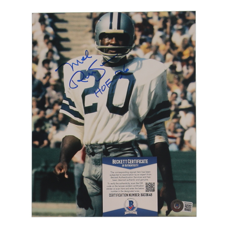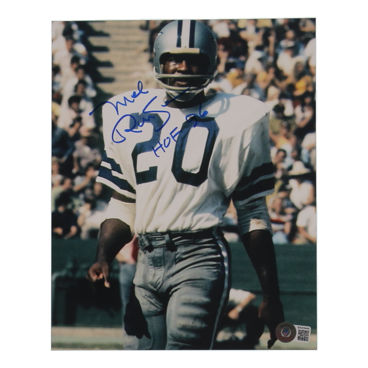 Photo measures 8" x 10" in size and has been hand-signed and inscribed by Mel Renfro (Dallas Cowboys).