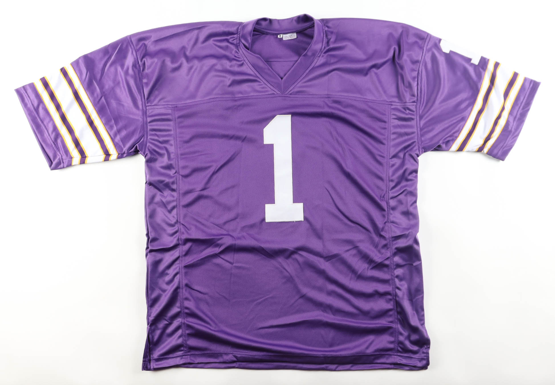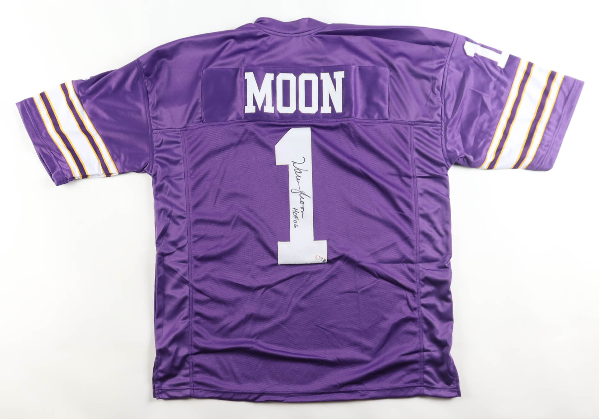 Custom jersey with everything sewn on, size XL. Hand-signed and inscribed by Warren Moon (HOF).